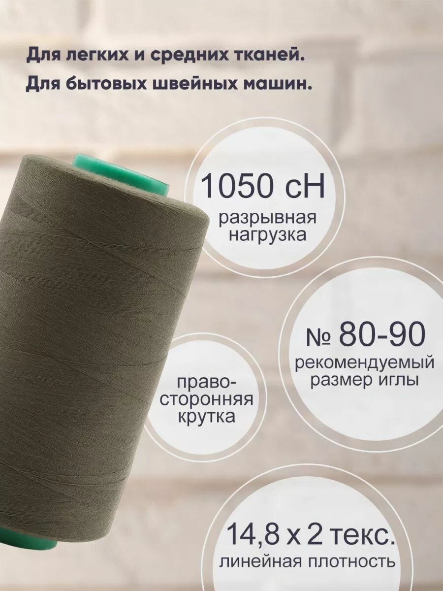 10 цен на Нитки швейные универсальные 40/2, 5000 ярд, промышленные, Bestex (345 тёмно-болотный)
