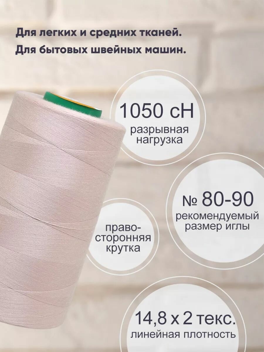 Нитки швейные универсальные 40/2, 5000 ярд, промышленные, Bestex (160 бежевый) 237 ₽