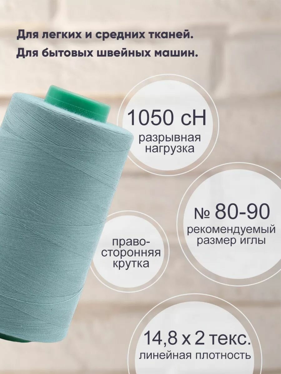 Нитки швейные универсальные 40/2, 5000 ярд, промышленные, Bestex (308 серо-голубой) 290 ₽
