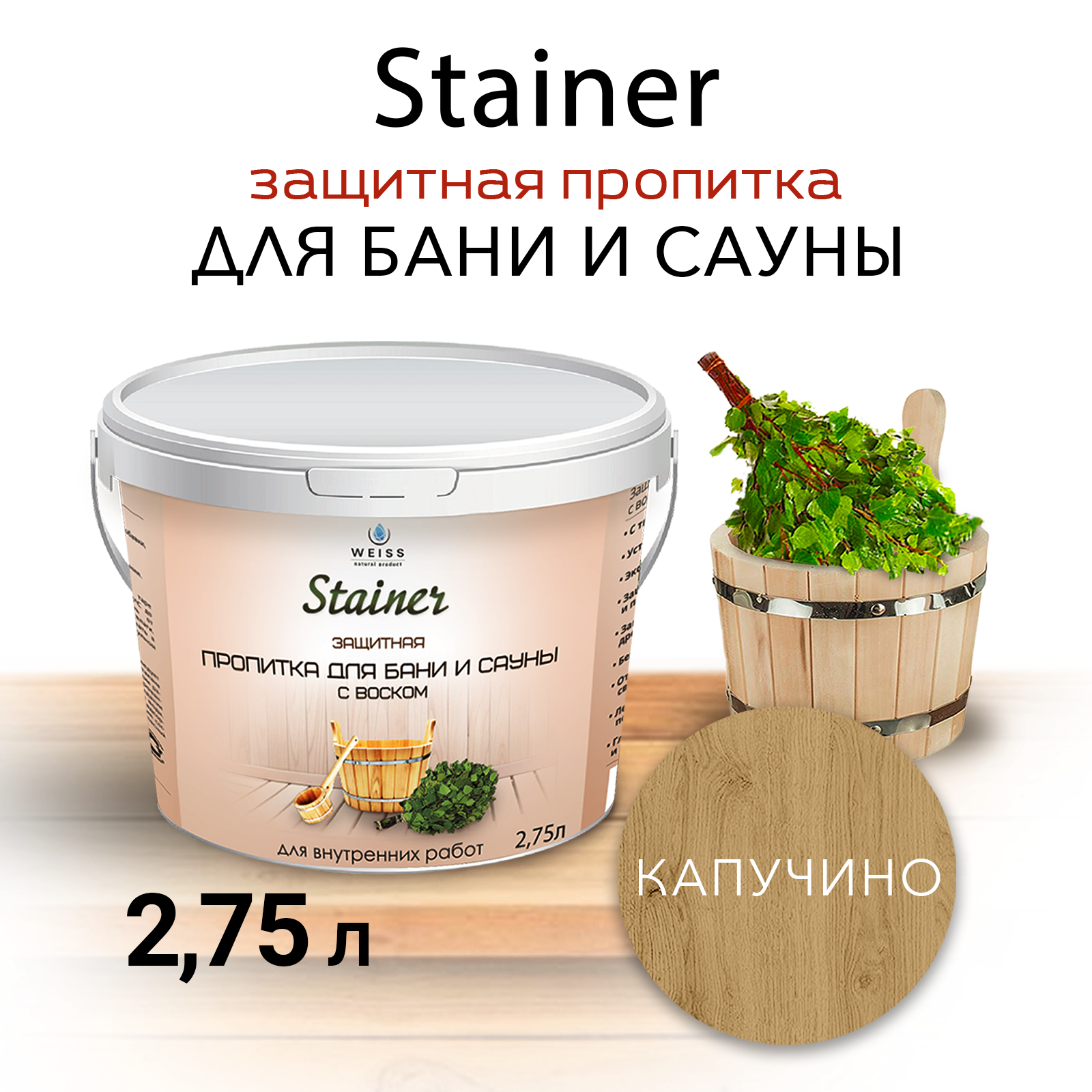 Защитная пропитка для бани и сауны с воском Stainer, 2,75л Капучино 003, защитная лазурь информация: