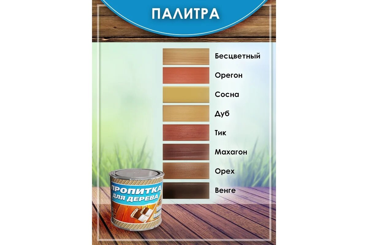 Пропитка для Дерева White House 0.8л Тик, Полуматовая, Алкидная с Антисептиком, Матовая для Внутренних и Наружных Работ. 481 ₽