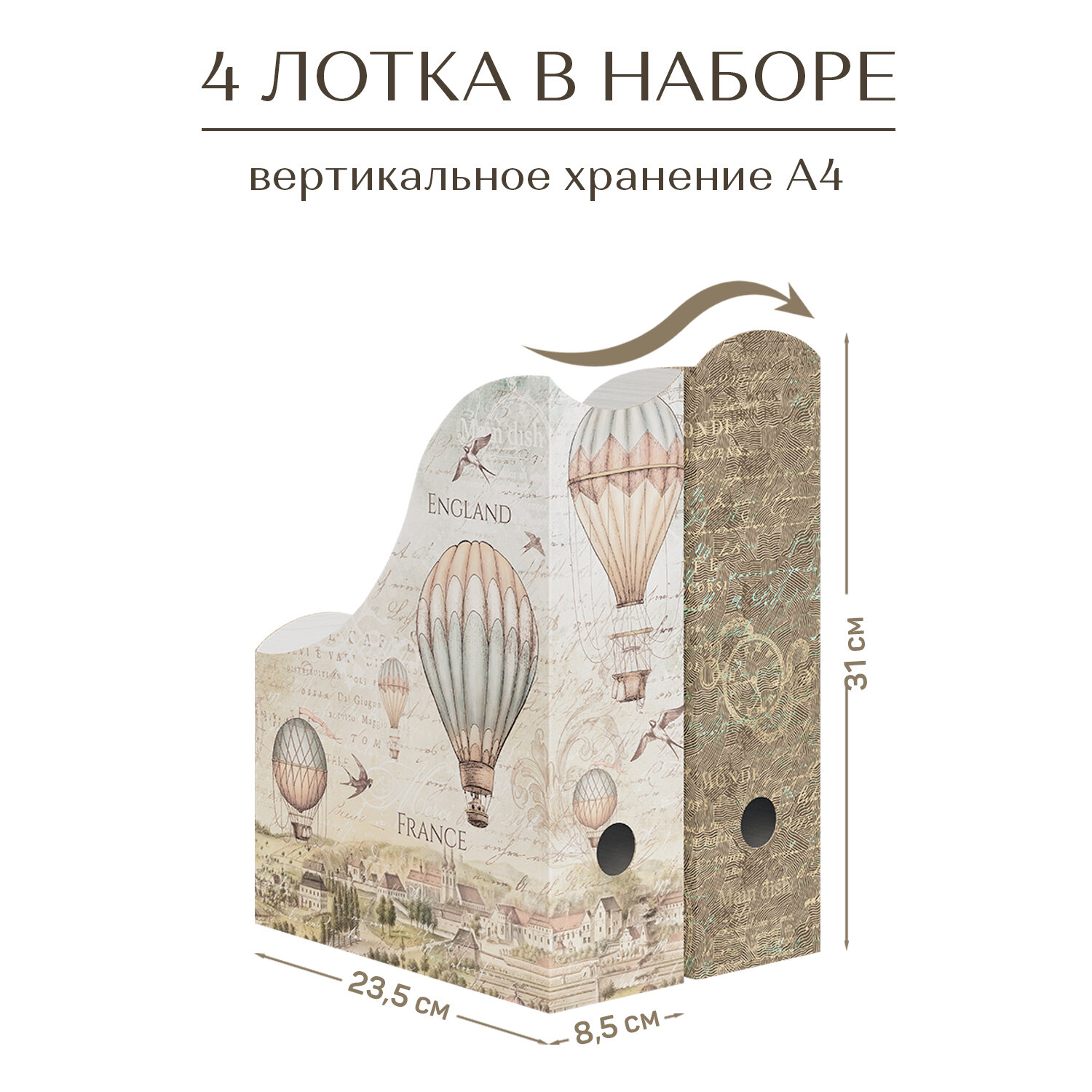 Лотки для бумаг верт, 31*23.5*8.5 см, набор 4 шт, 2 цвета, TRAVELLING " информация: