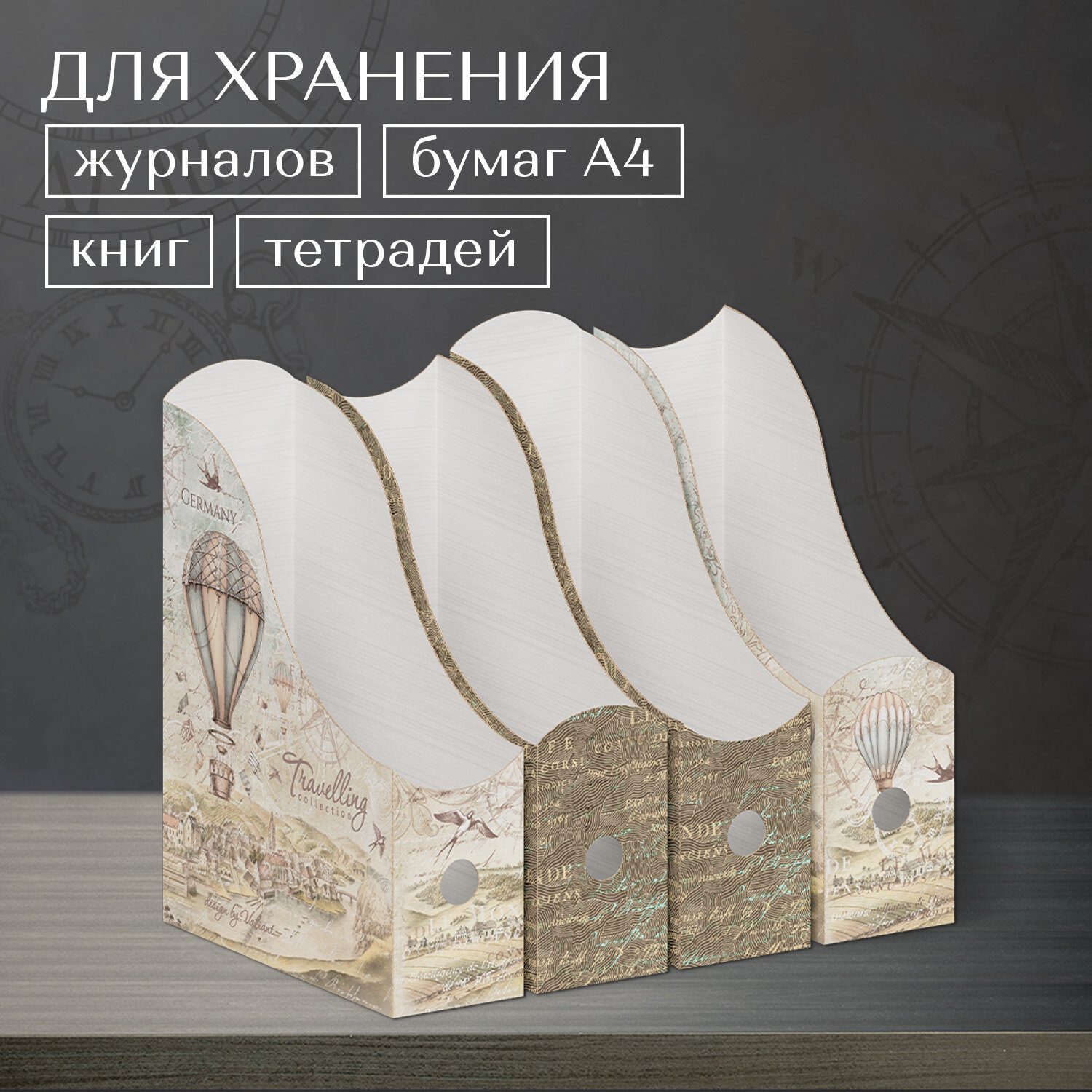 10 цен на Лотки для бумаг верт, 31*23.5*8.5 см, набор 4 шт, 2 цвета, TRAVELLING "
