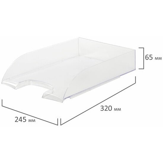 Лоток для бумаг Brauberg горизонтальный для бумаг "Office style", 320х245х65 мм, прозрачный, 237288 информация: