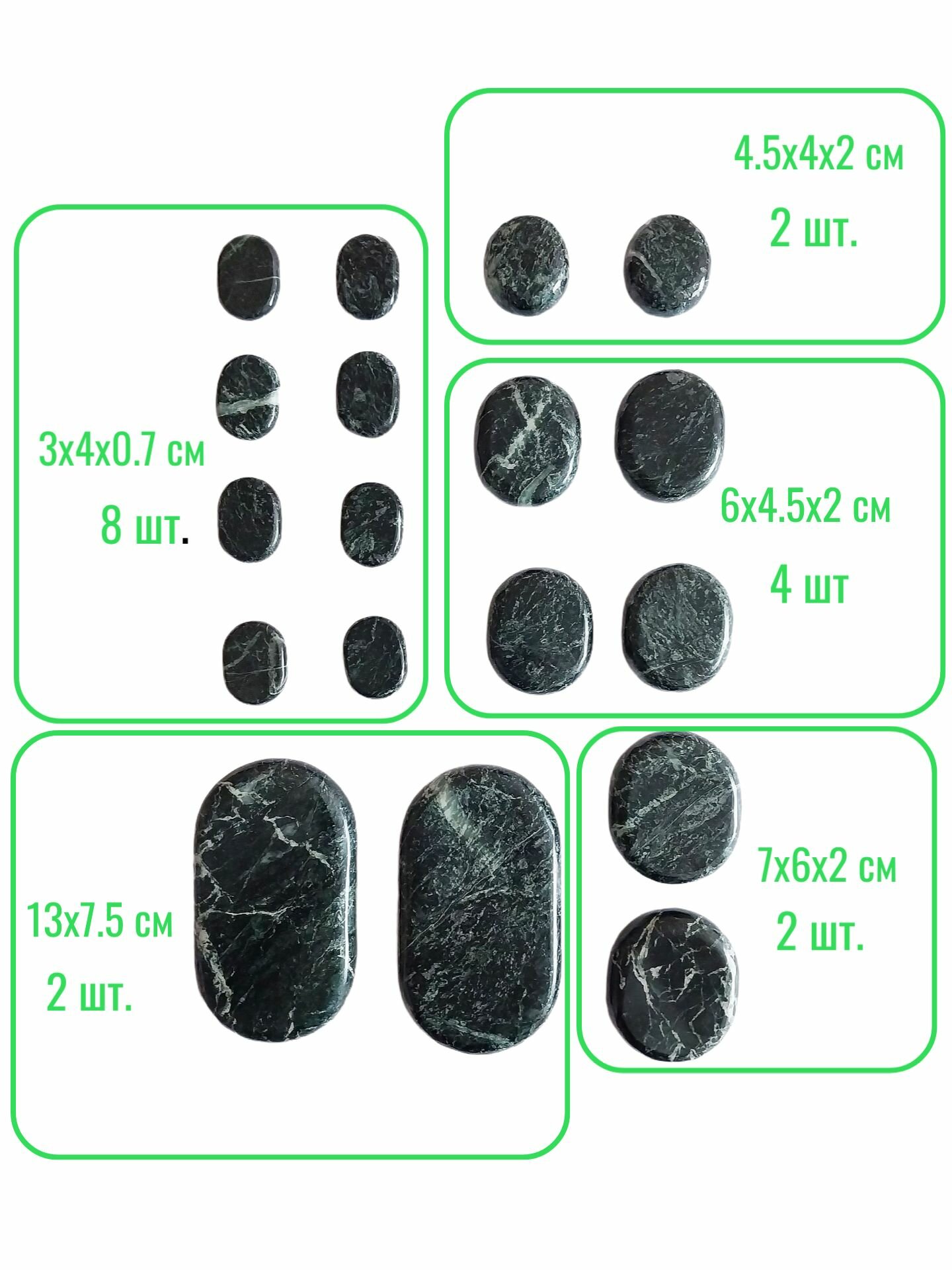10 цен на Набор камней для стоунтерапии из 18 штук полированный змеевик