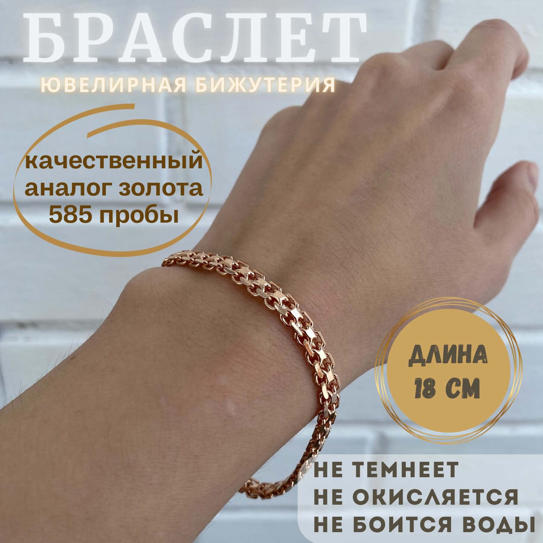 Браслет-цепочка FJ, 1 шт., размер 18 см, золотистый информация:
