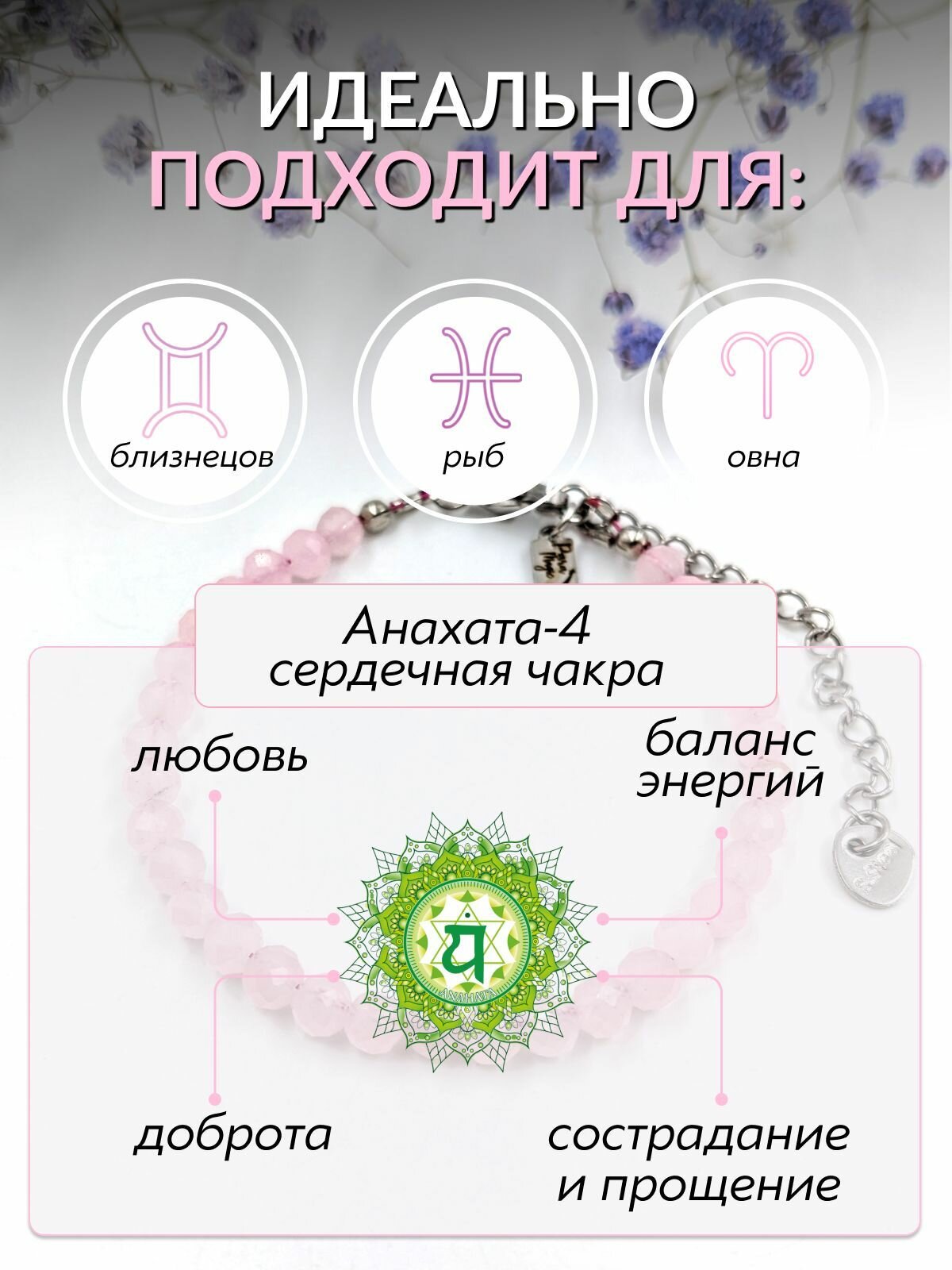 Браслет женский на руку на ногу натуральный розовый кварц на ювелирной струне застежка карабин ParaMagic, размер бусины 3 мм