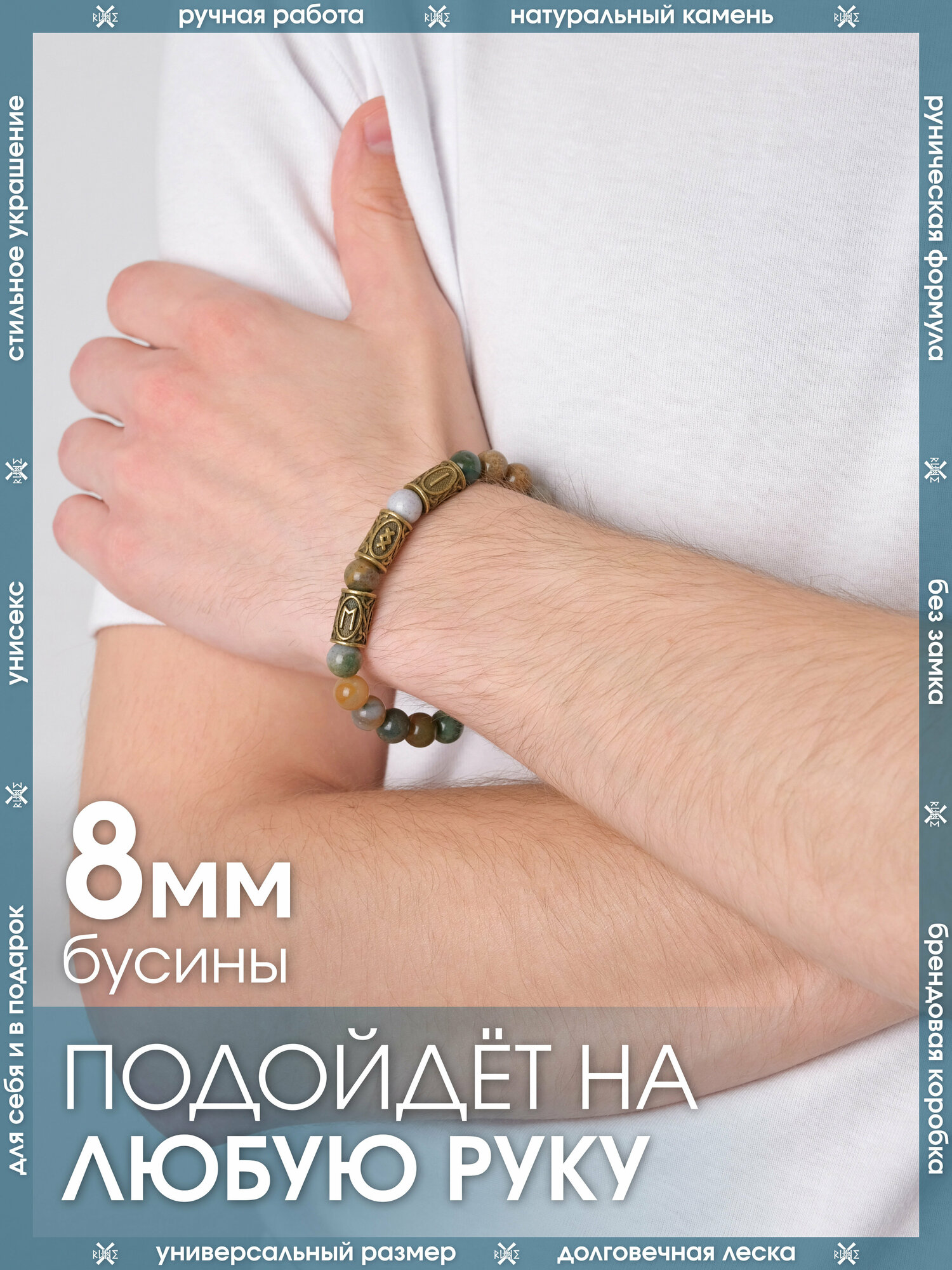 Браслет из натуральный камней/Оберег на руку из яшмы/Талисман-амулет с рунами женский, мужской/Украшение из бусин 790 ₽