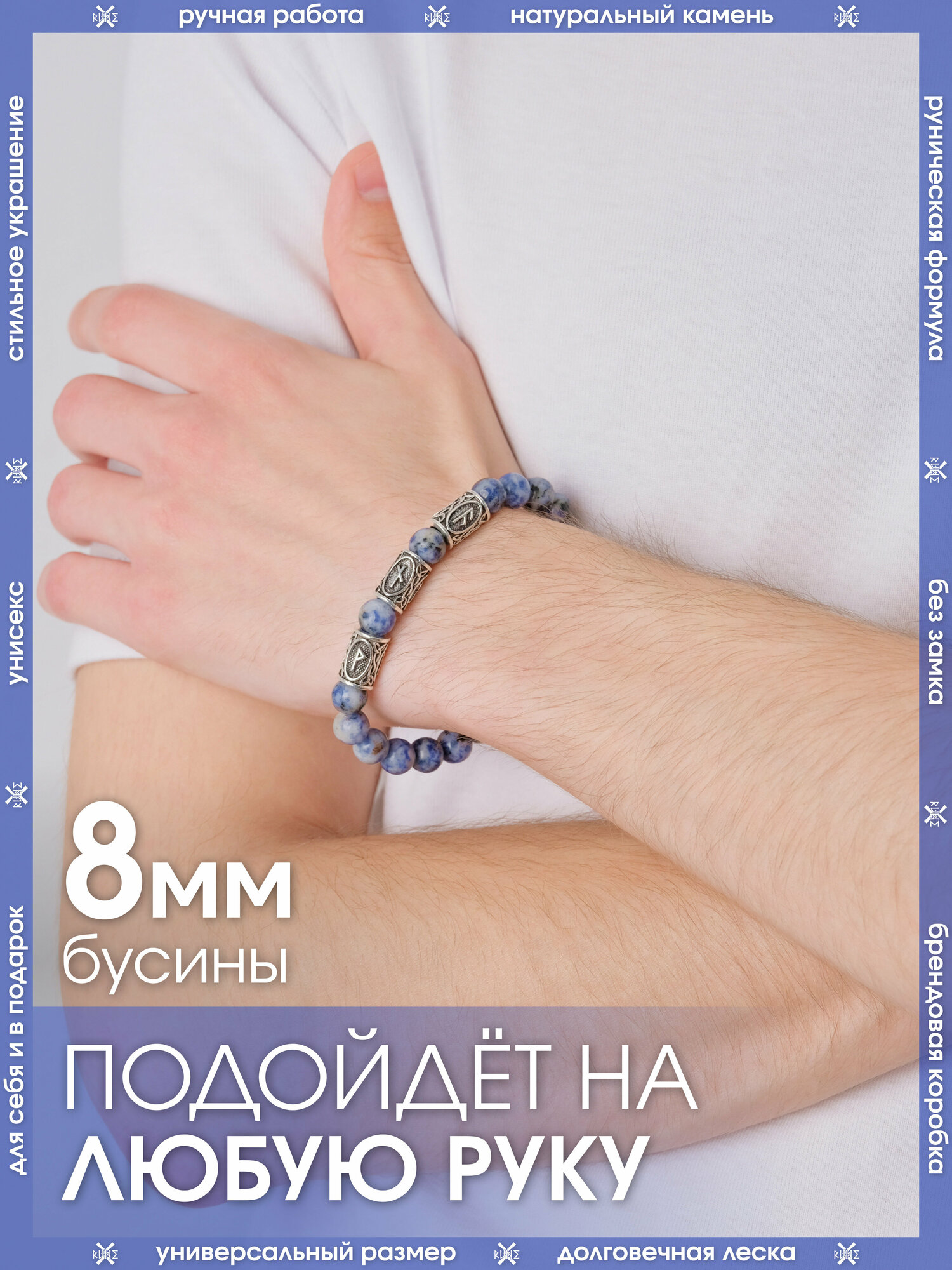 Браслет из натуральный камней/Оберег на руку из содалита/Талисман-амулет с рунами женский, мужской/Украшение из бусин 790 ₽