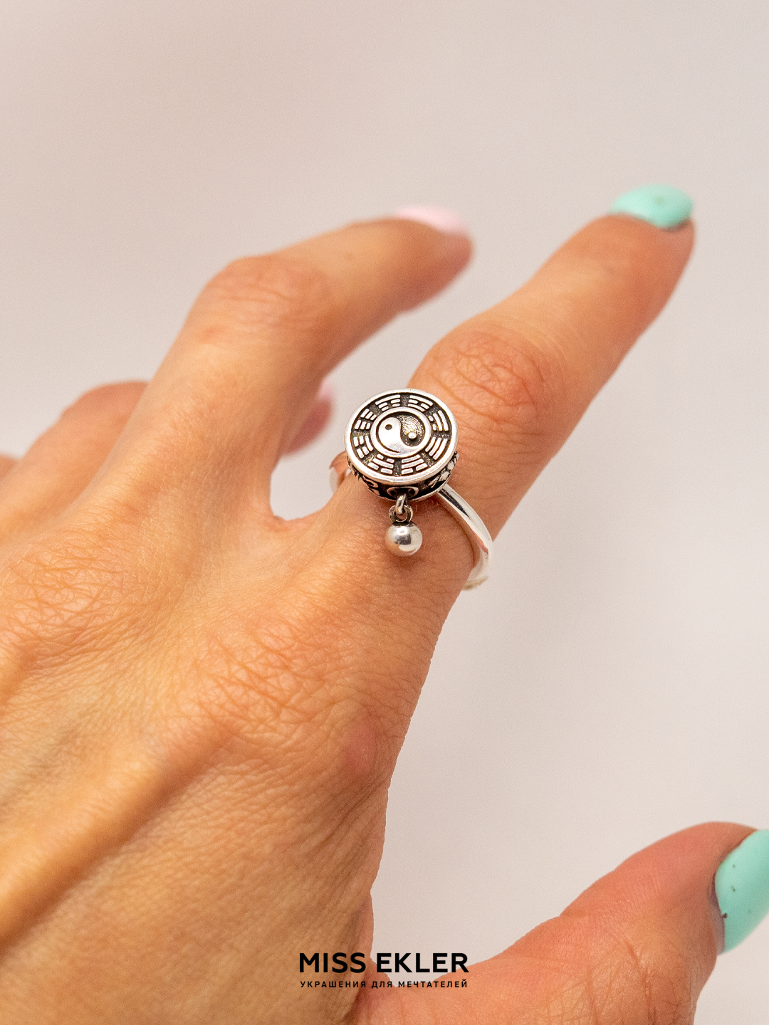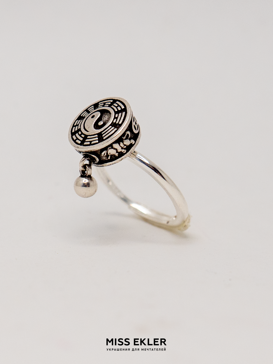 Кольцо с мантрами, Miss Ekler, крутящееся, серебрение 850 ₽