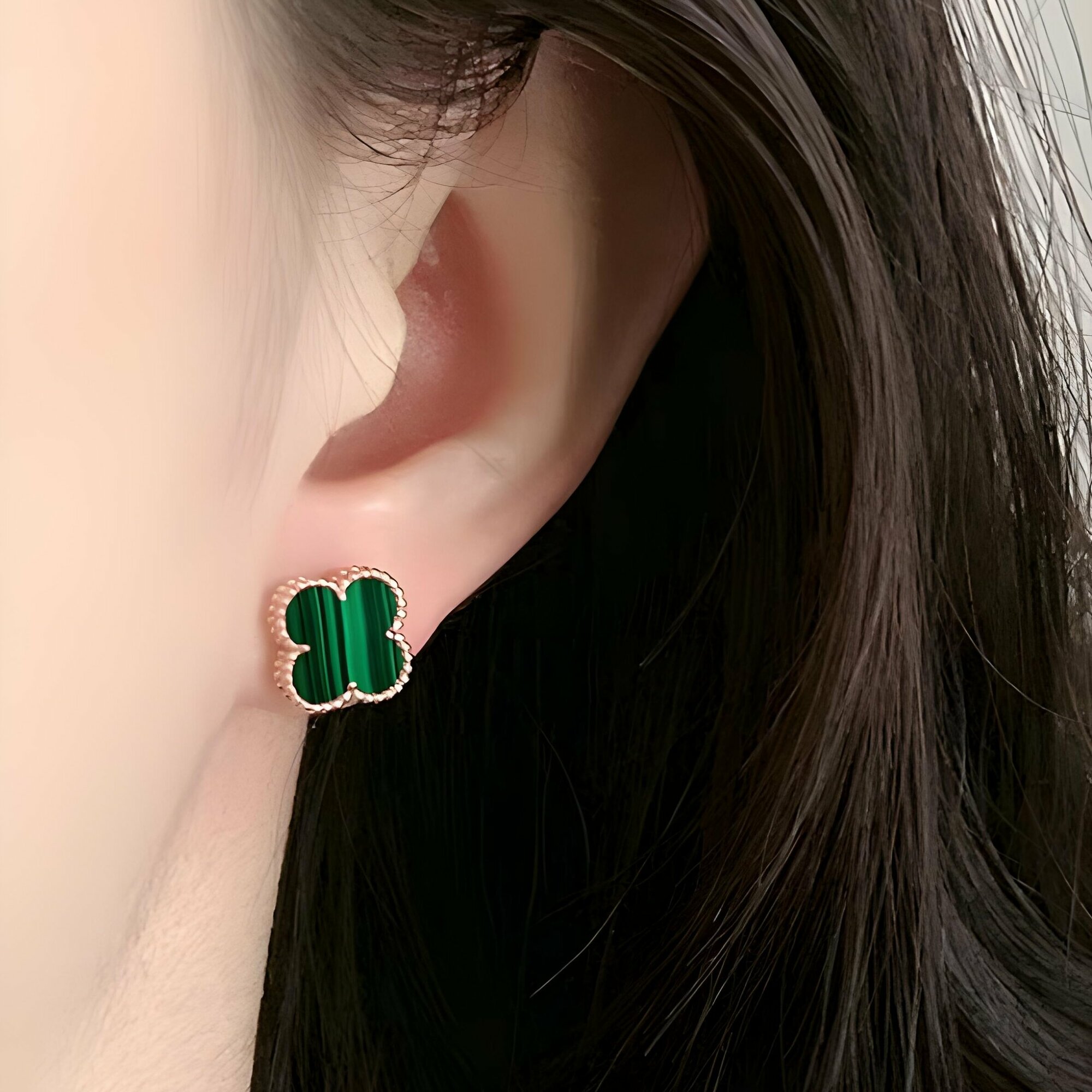 Серьги клевер женские бижутерия с зеленым малахитом, украшения на новый год и день рождения, пусеты винтики гвоздики 250 ₽