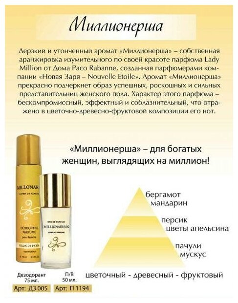 10 цен на Новая Заря woman (deo) Millionairess Eau My Solair Дезодорант 75 мл.