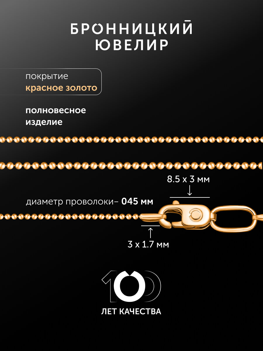 Бронницкий ювелир Цепочка из серебра 925 пробы автоматного плетения "Перлина" из шариков (Шариковая) покрытие золото женская 1 175 ₽