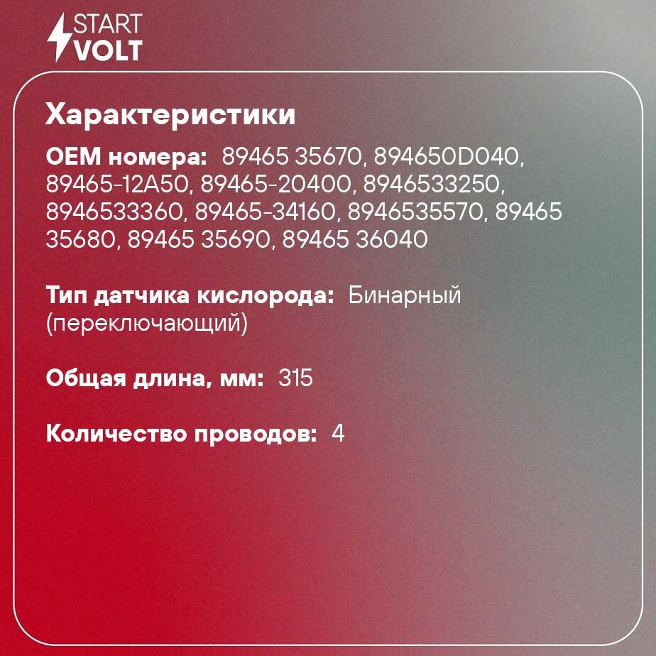 10 цен на Датчик кислорода для автомобилей Toyota Camry V50 (11-) 2.5i/LC Prado (02-) 4.0i после катализатора VS-OS 1903 StartVolt