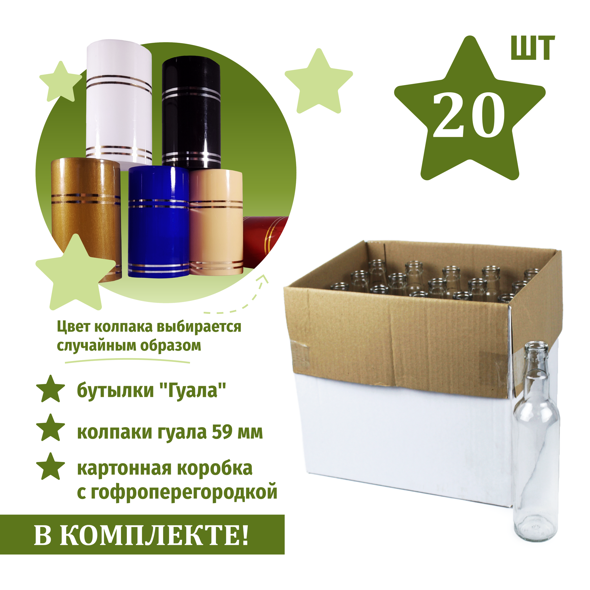 Набор бутылок "Гуала", 500мл, стекло, с крышкой в комплекте, 20 штук BUTYLKA.SU информация: