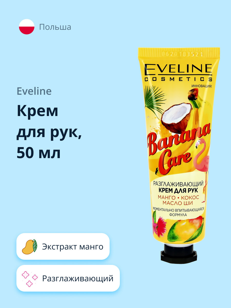 Eveline Cosmetics Крем для рук Banana care Разглаживающий манго, кокос, масло ши, 50 мл