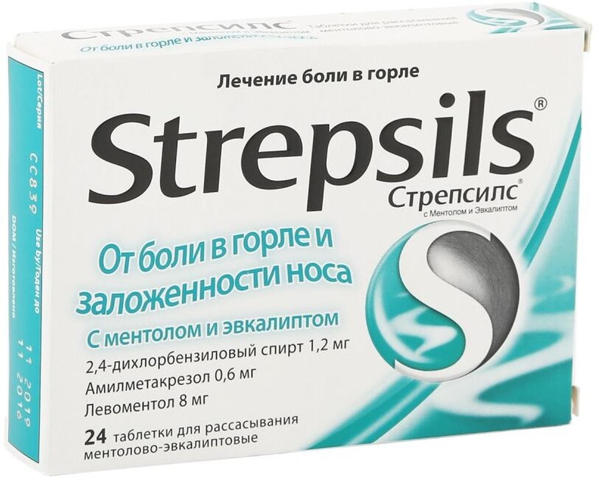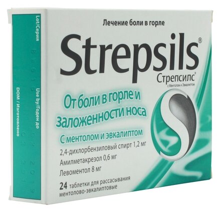 Стрепсилс Ментол и Эвкалипт таб. д/рассас., 24 шт., ментол + эвкалипт информация: