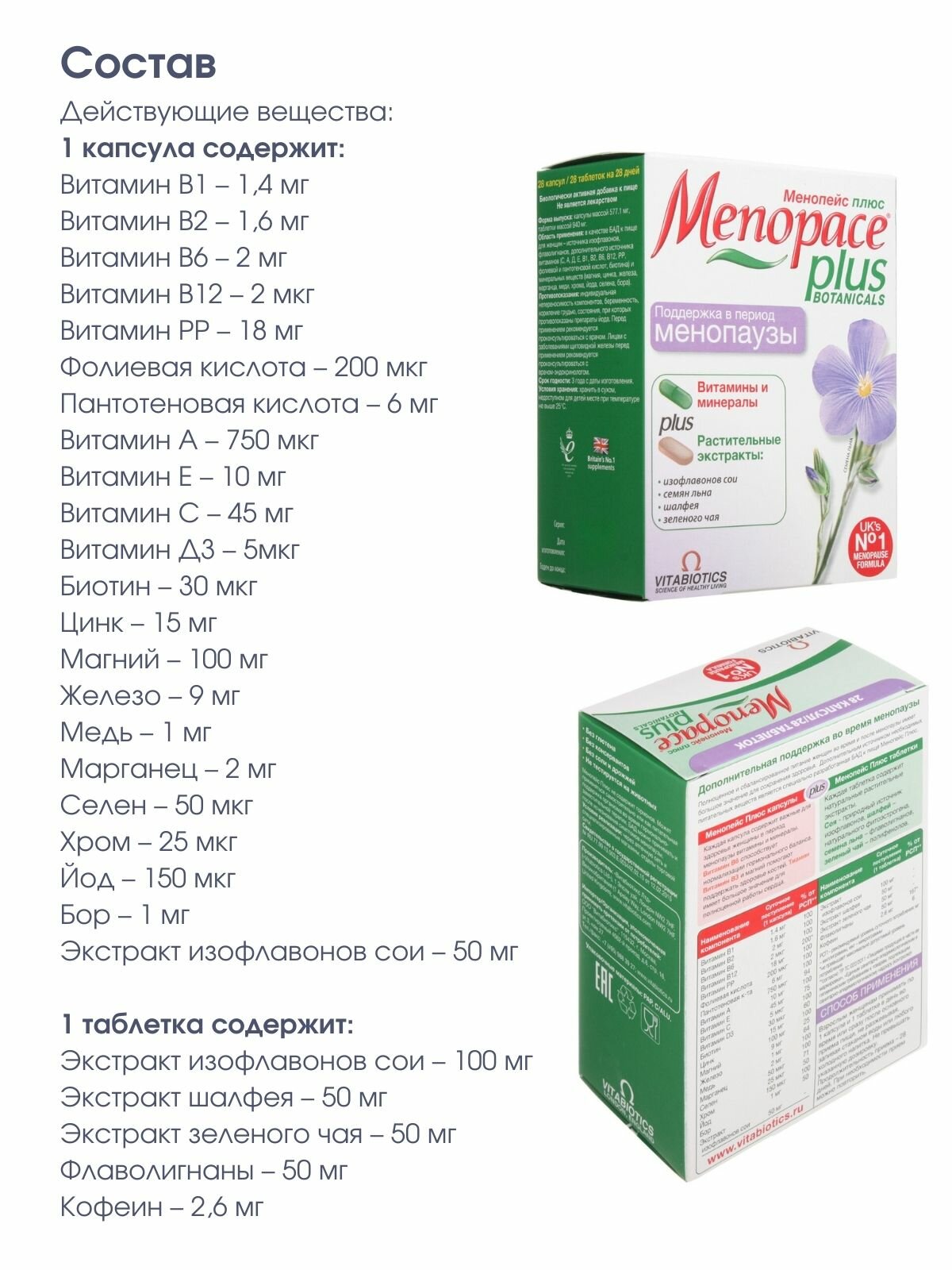 Vitabiotics Mенопейс Плюс 28 таблеток и 28 капсул информация: