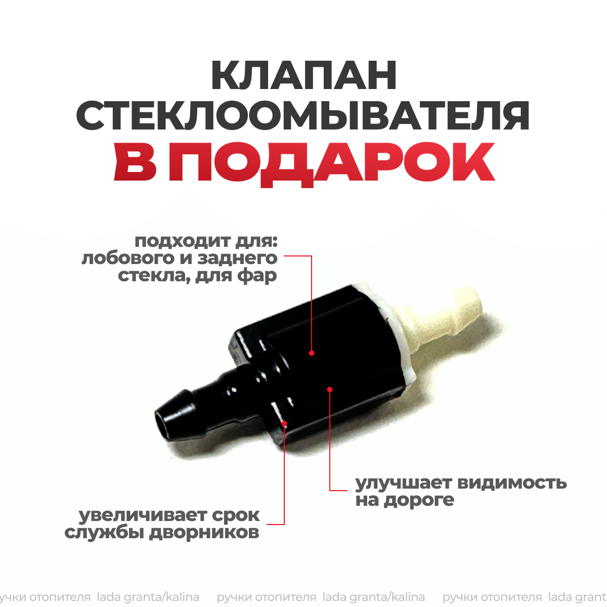 | Подробная комплектация | Ручки отопителя и кондиционера Лада Гранта Калина (черные) - 3 шт; Обратный клапан стеклоочистителя ветрового стекла - 1 шт в комплекте |