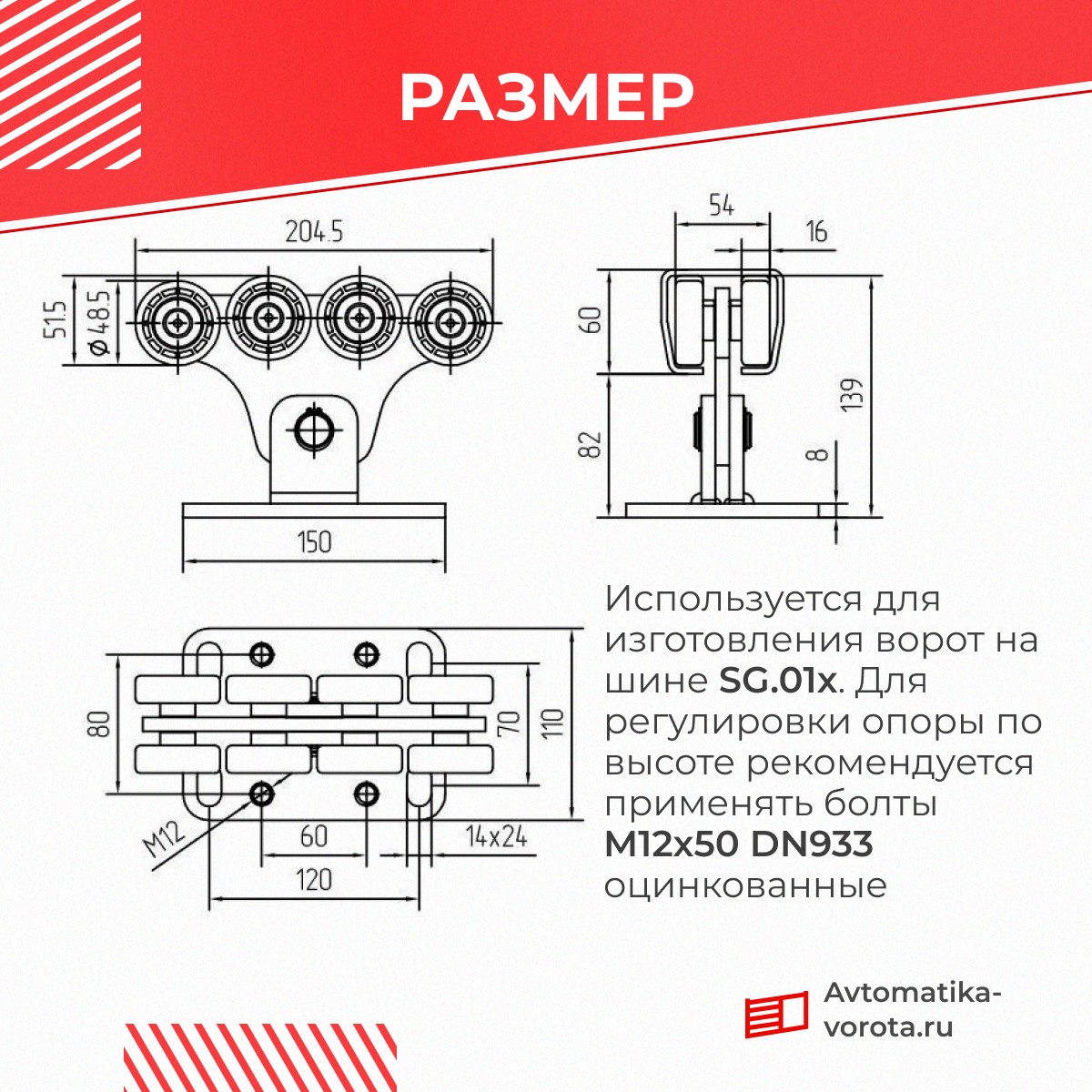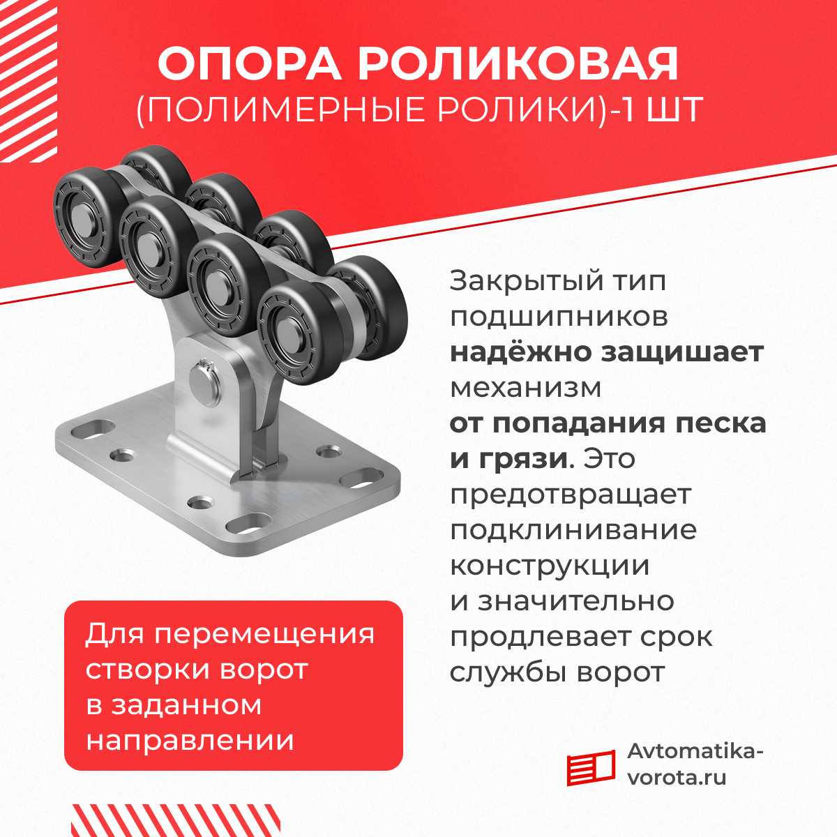 Опора роликовая SGN.01.100 полимерные ролики (комплектующие для откатных ворот) информация: