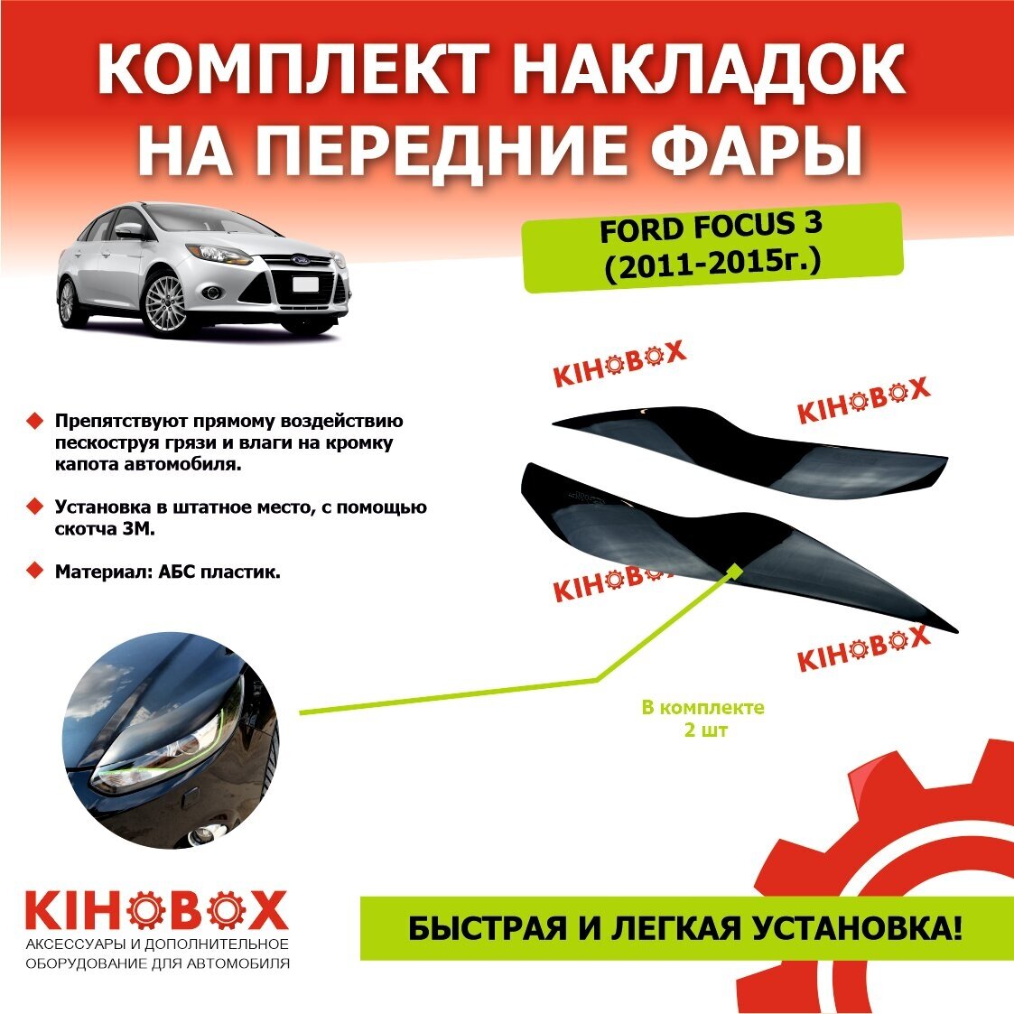 10 цен на Реснички накладки на передние фары Форд Фокус 3 (2011-15) Ford Focus 3 (2011-15) 2 шт - Tolplastik