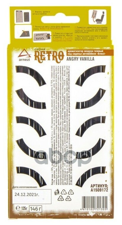 10 цен на ARNEZI A1509172 Ароматизатор под сиденье, гелевый Retro Angry Vanilla 125г ARNEZI A1509172