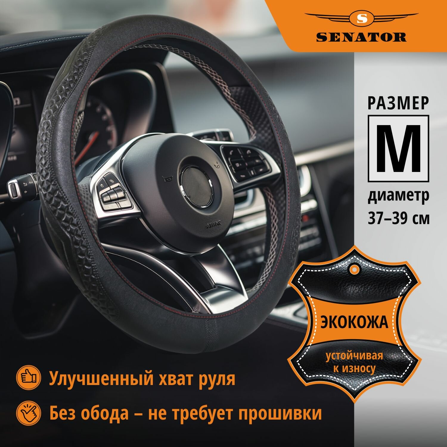 Оплетка на руль 37-39 см SENATOR Orlean "М" чехол на руль автомобиля
