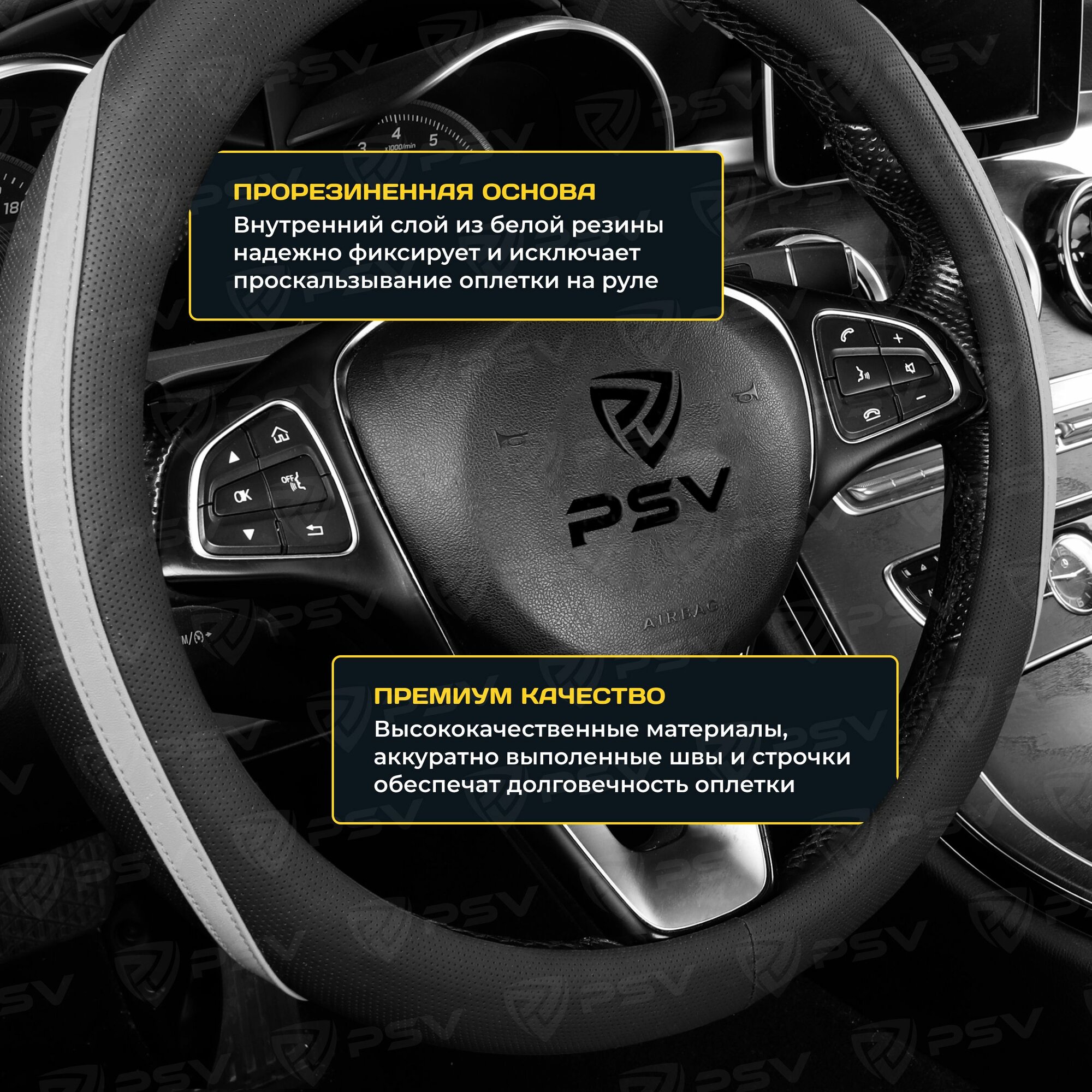 Оплетка руля M PSV Termit экокожа черно-серая PSV 136859 | цена за 1 шт 710 ₽