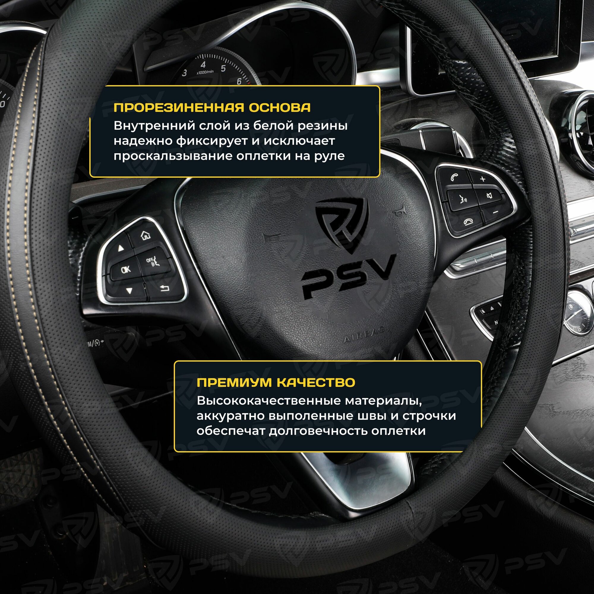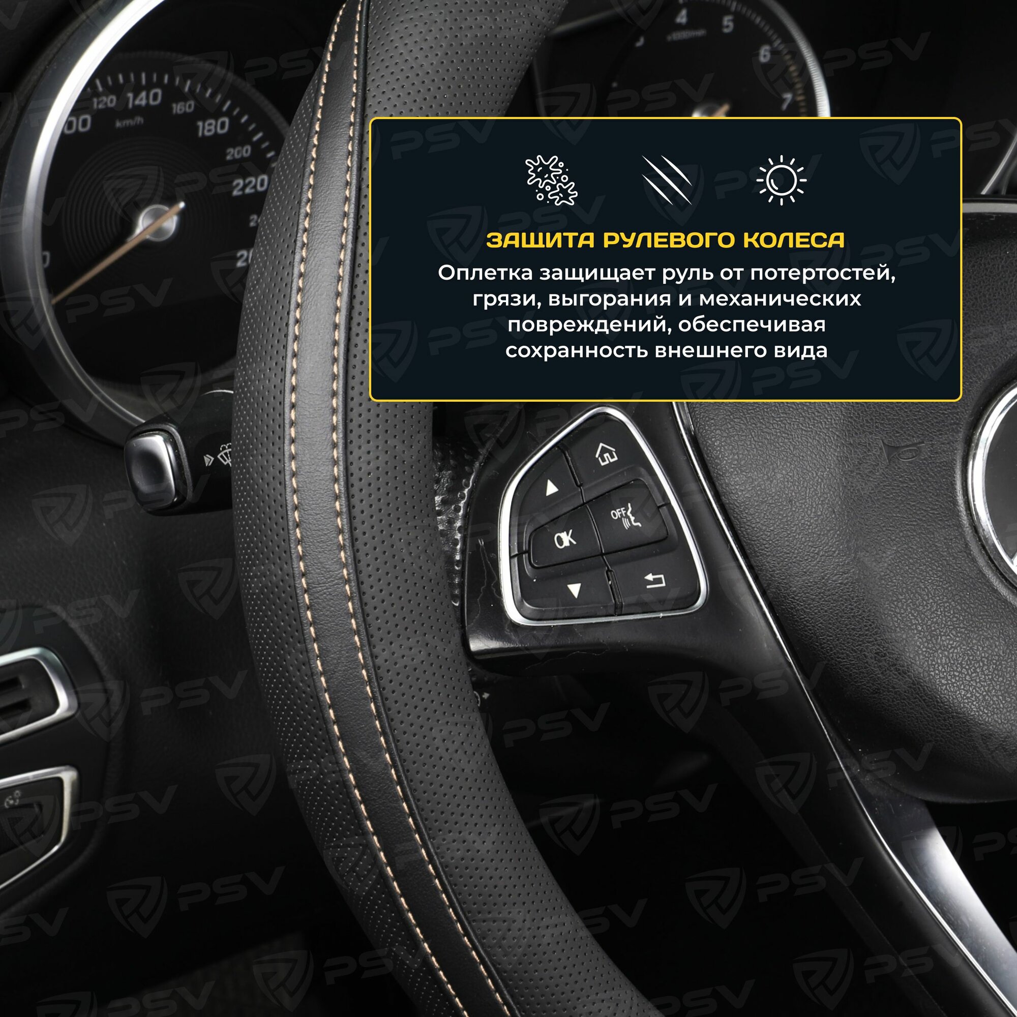 Оплетка чехол на руль PSV TERMIT (Черный с бежевой строчкой) M 37-39 см, экокожа, 136858 750 ₽