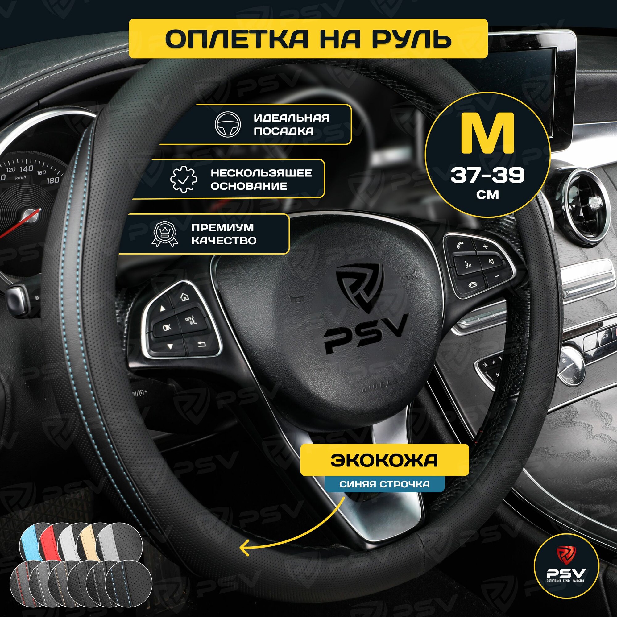 Оплетка руля M PSV Radikal экокожа черная с синей строчкой PSV 133074 | цена за 1 шт 1 020 ₽
