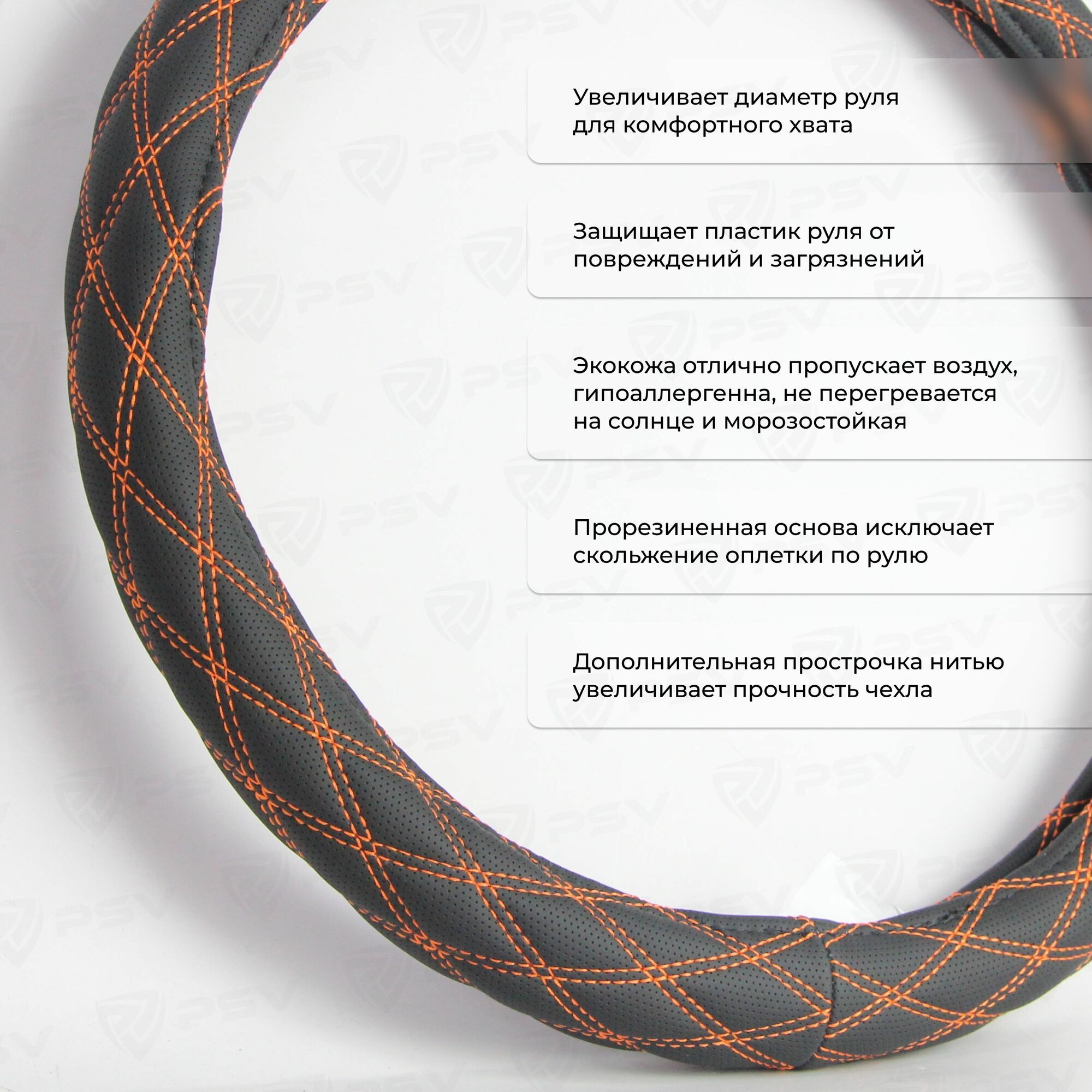 Оплетка чехол на руль PSV RADIKAL (Черный с оранжевой строчкой) M 37-39см, экокожа, 136034 1 120 ₽