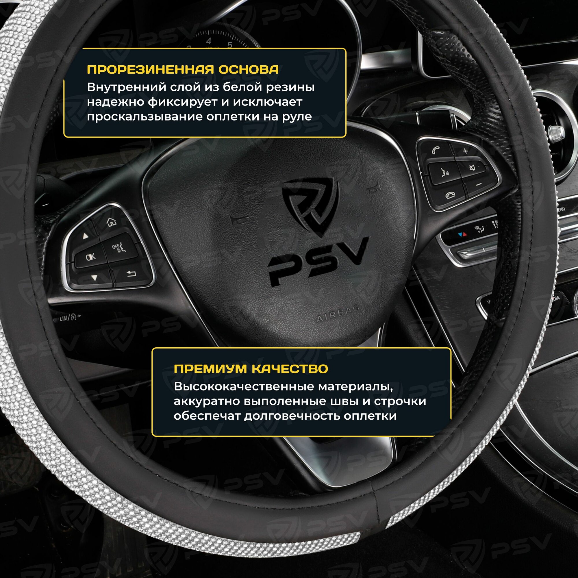 Оплетка руля M PSV Almaz Pro экокожа стразы золото PSV 136816 | цена за 1 шт 1 080 ₽