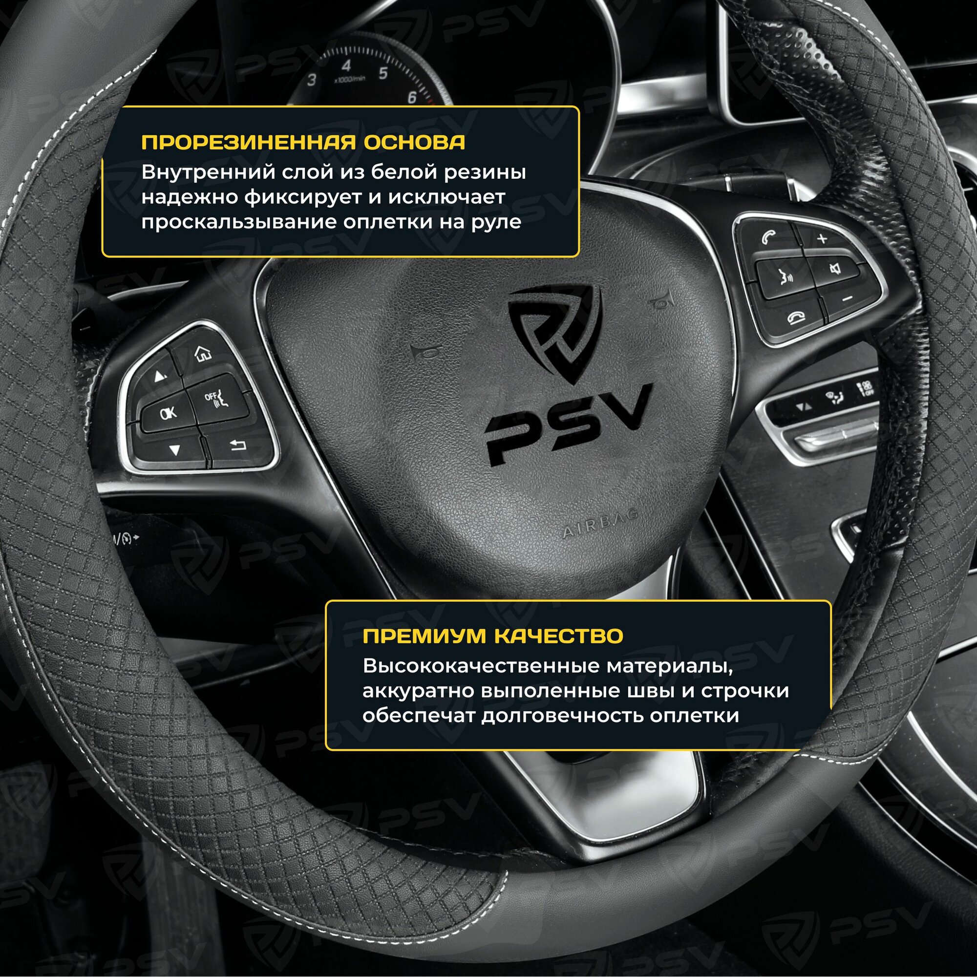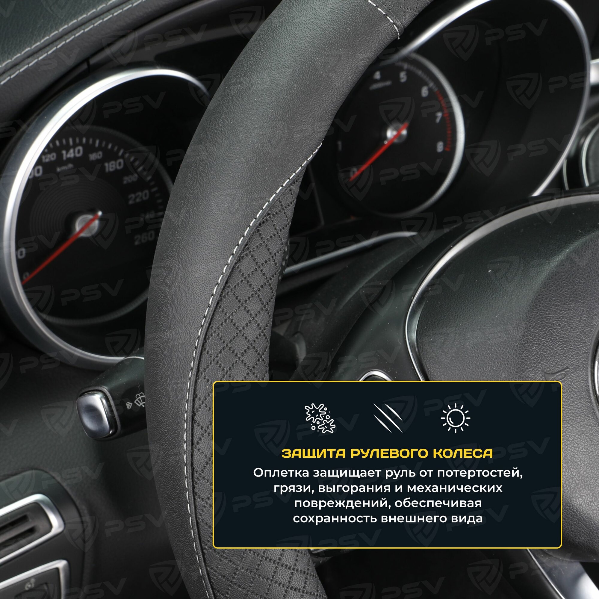 Оплетка руля M PSV Great экокожа черная отстрочка черная PSV 136824 | цена за 1 шт 820 ₽