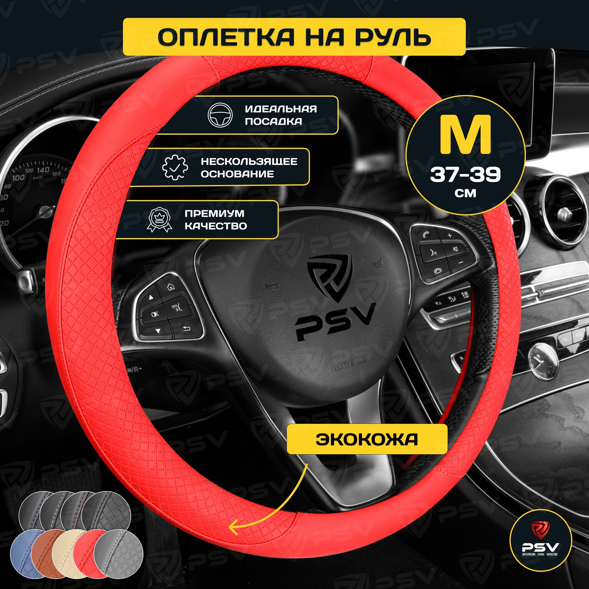 Оплетка руля M PSV Great экокожа красная PSV 136831 | цена за 1 шт 820 ₽