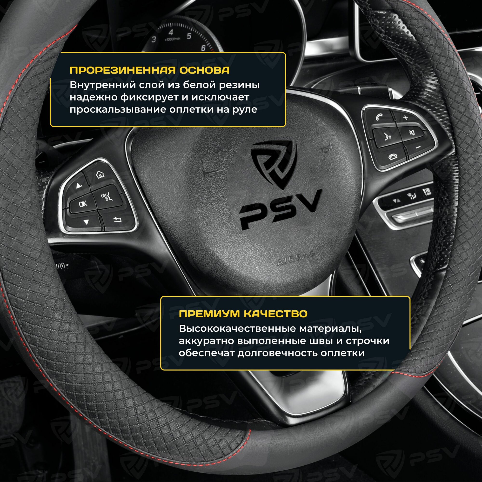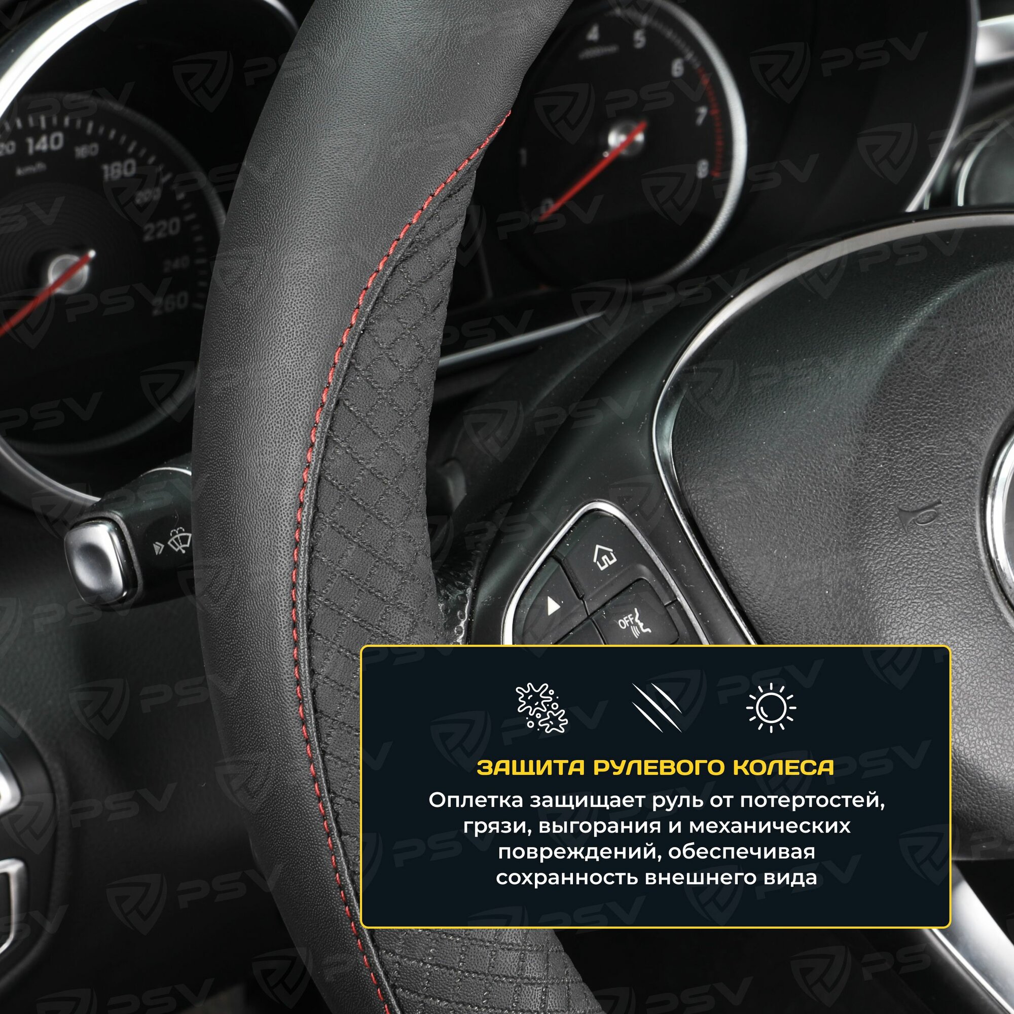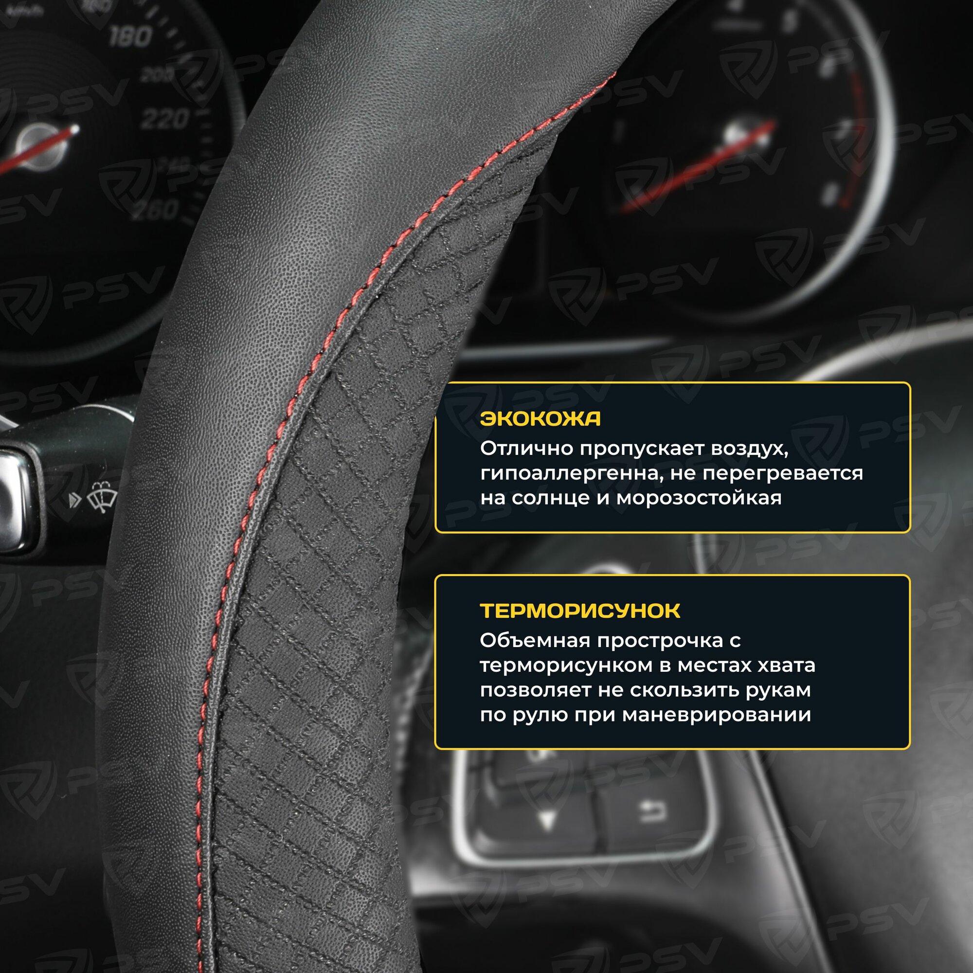 Оплетка чехол на руль PSV GREAT (Черный, строчка красная) M 37-39 см, экокожа, 136826 950 ₽