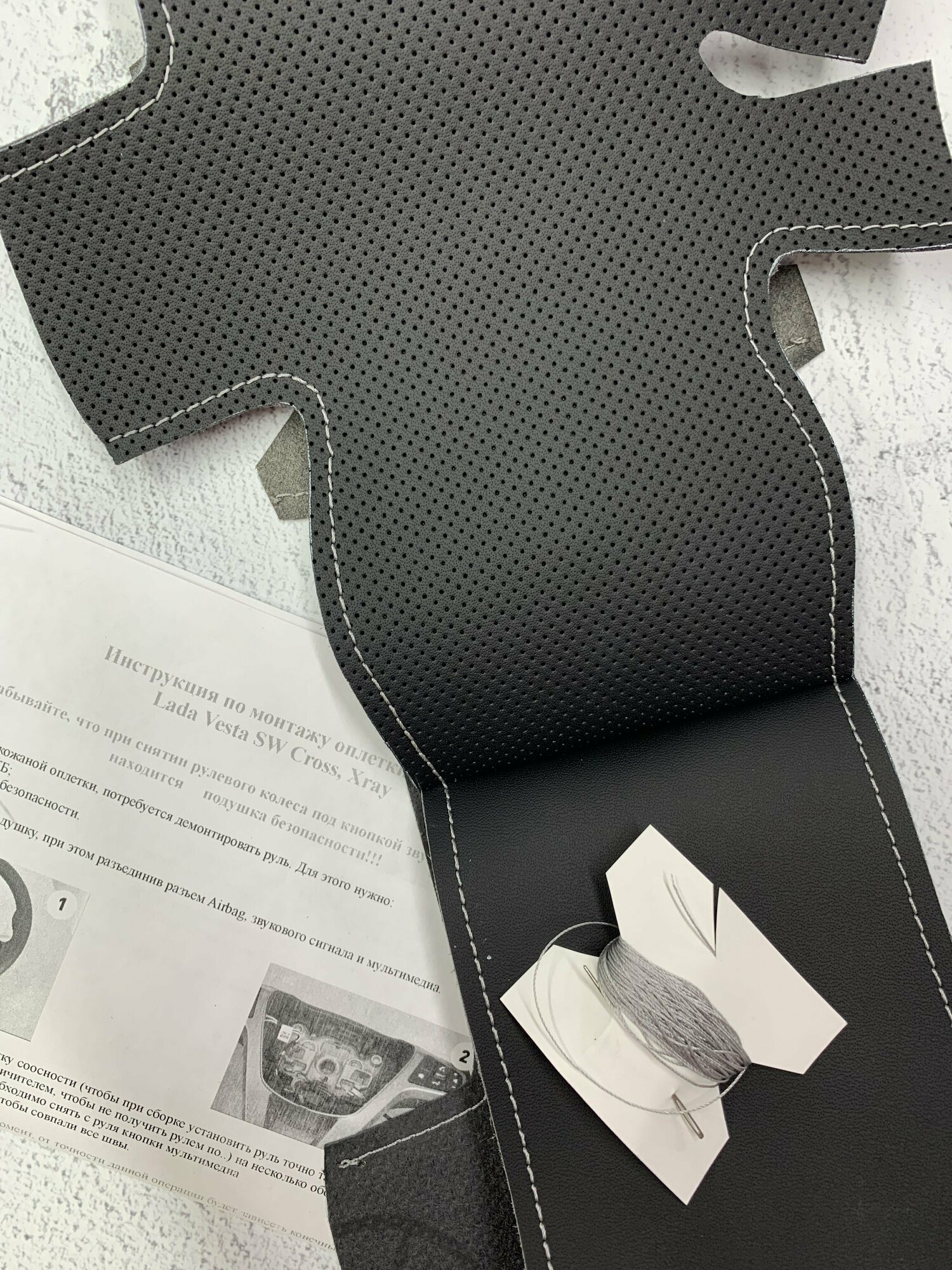 Отзывы на Оплетка на руль LADA Vesta I (2015-н. в.), Лада Xray I (2015-н. в.) из экокожи для руля без штатной кожи (серая нить)