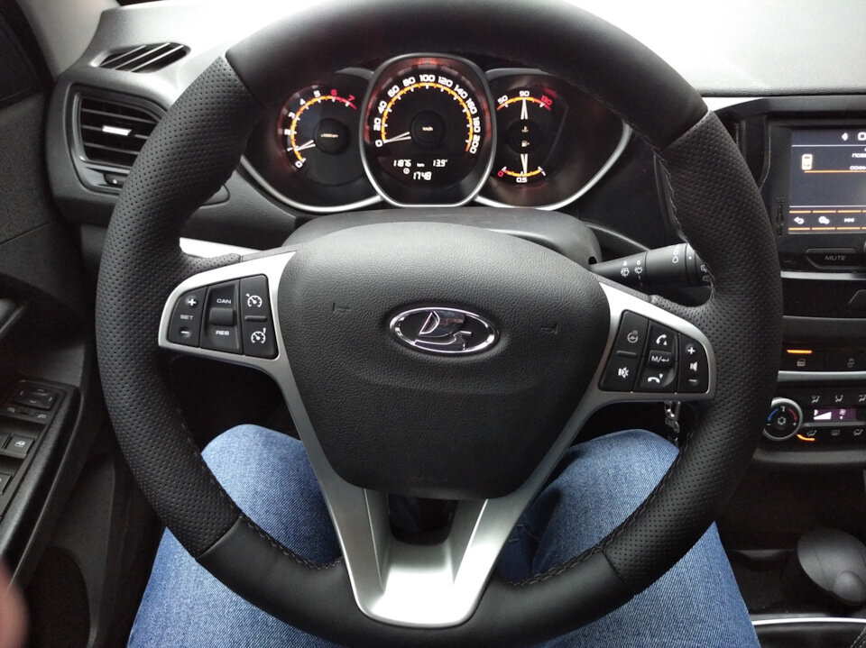 Отзывы на Оплетка на руль LADA Vesta I (2015-н. в.), Лада Xray I (2015-н. в.) из экокожи для руля без штатной кожи (черная нить)