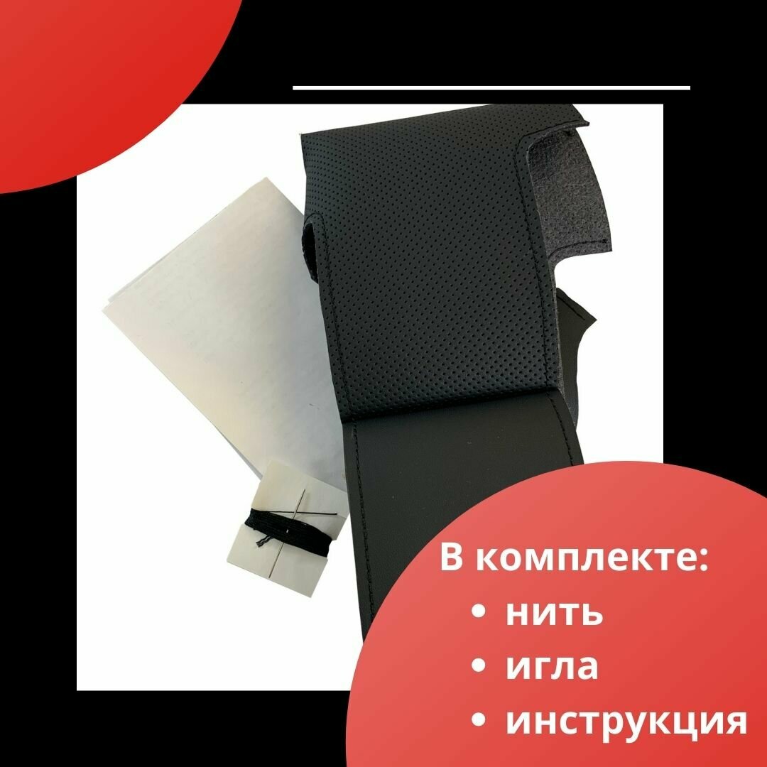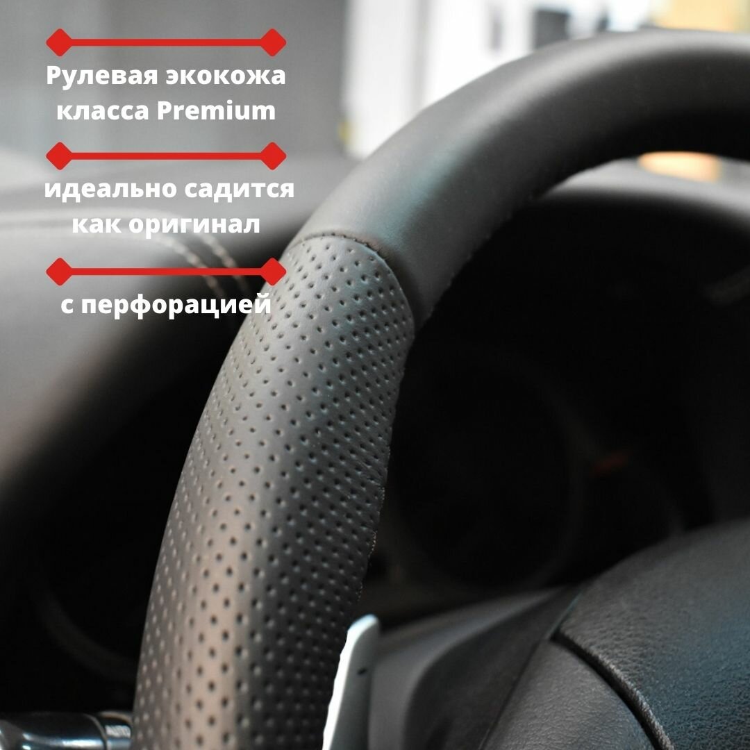 Оплетка на руль LADA Vesta I (2015-н.в.), Лада Xray I (2015-н.в.) из экокожи для руля без штатной кожи (красная нить) 1 650 ₽