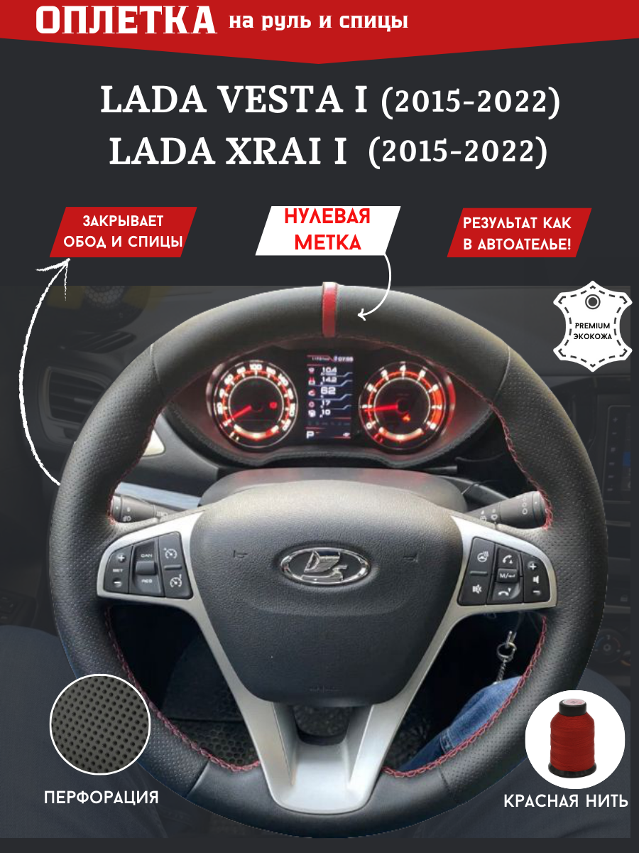 Оплетка на руль LADA Vesta I (2015-н. в.), Лада Xray I (2015-н. в.) из экокожи для руля без штатной кожи с нулевой меткой информация: