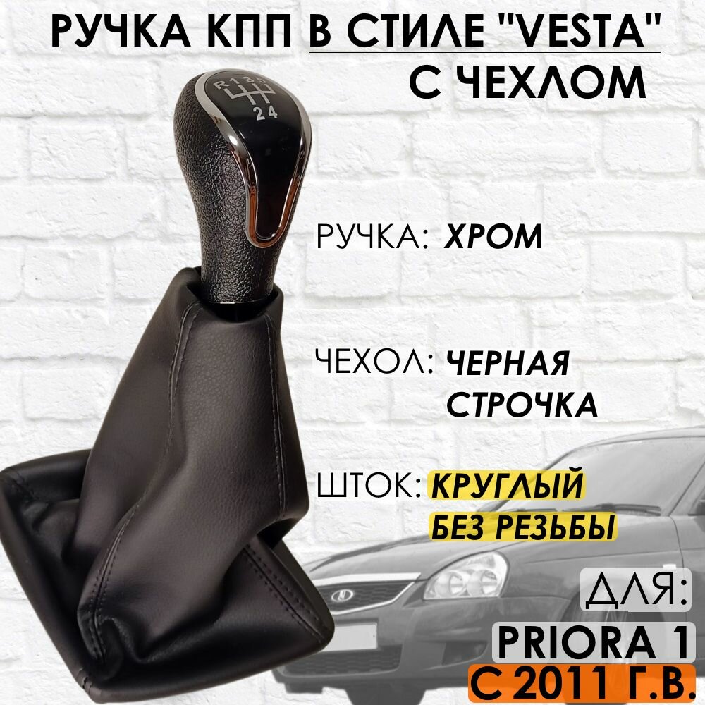 Ручка КПП с чехлом для Lada Priora 1, 2011-2013 г. в, "Веста стиль" (Хром/черная строчка) информация: