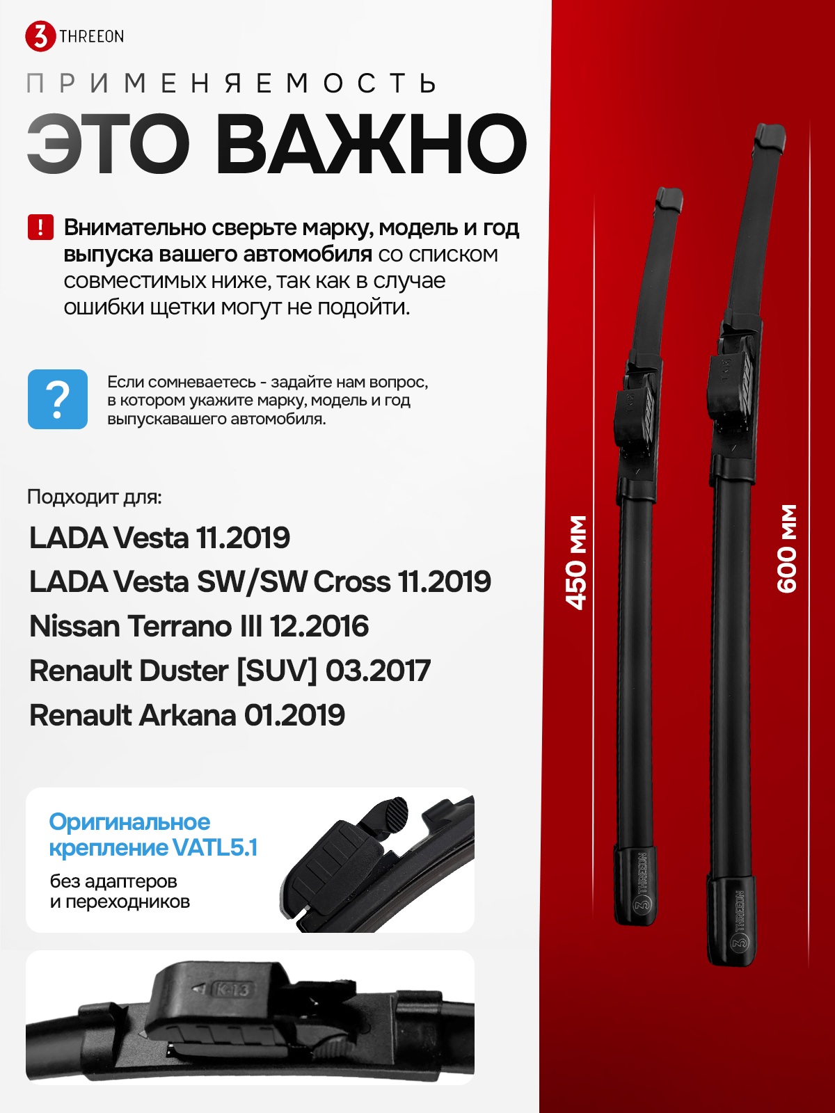 10 цен на Дворники Лада Веста 2019+ всесезонные бескаркасные 600/450, VATL5.1, 2 шт