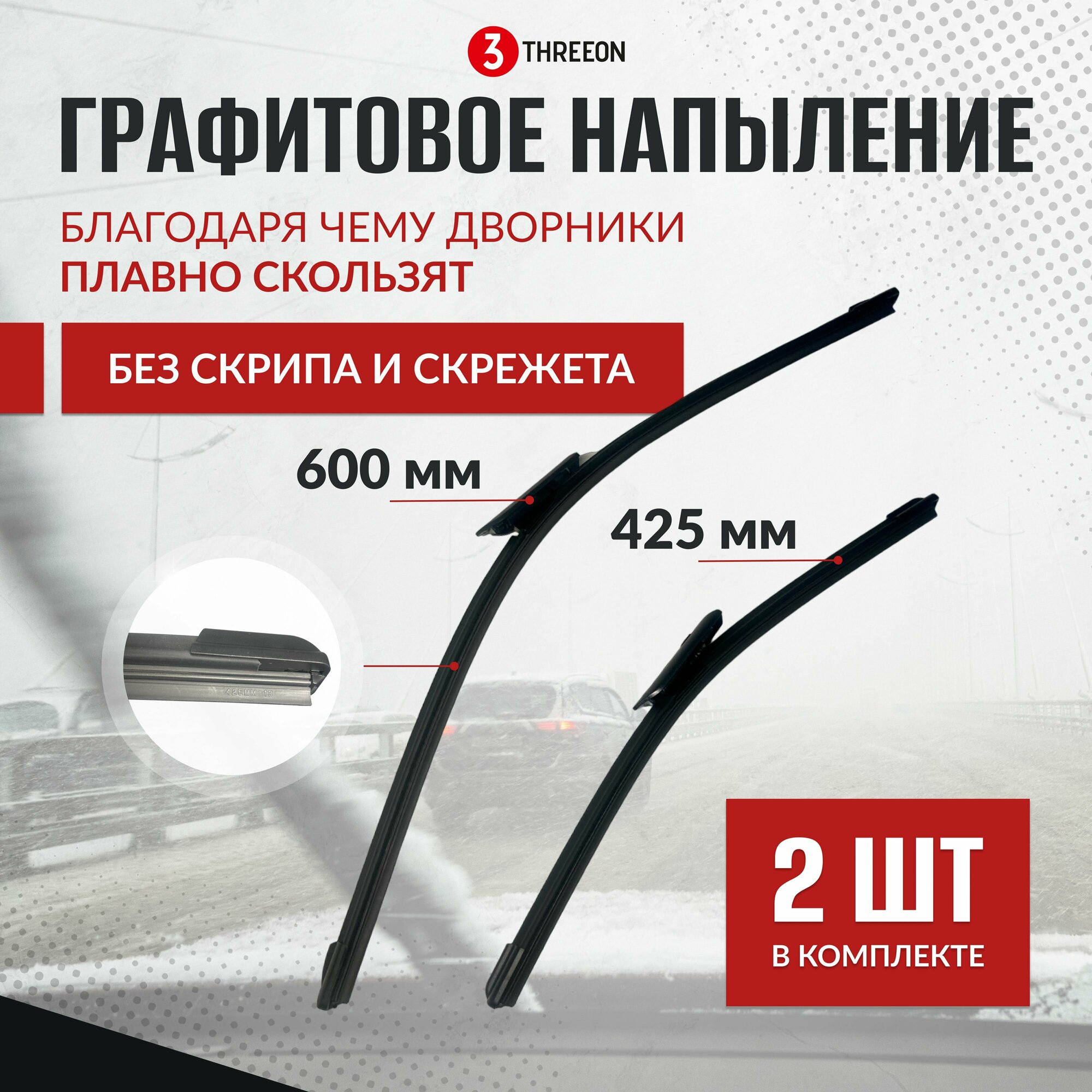 Щетки стеклоочистителя Хавал Джолион / Haval Jolion, 2 шт (60 + 42,5 см), 2шт, бескаркасные, всесезонные информация: