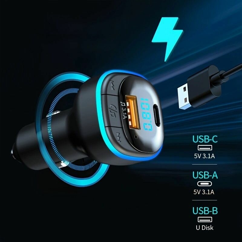 Автомобильный FM-передатчик Bluetooth 5,0 с двумя USB-портами и поддержкой быстрой зарядки, With Remote Control