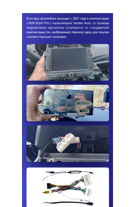 | Подробная комплектация | головное устройство, рамка для установки в штатное место, комплект необходимых проводов, схема подключения проводов, антенна GPS, антенна 4G, 2 USB провода, шурупы и отвертка, салфетка из микрофибры, электронная инструкция |