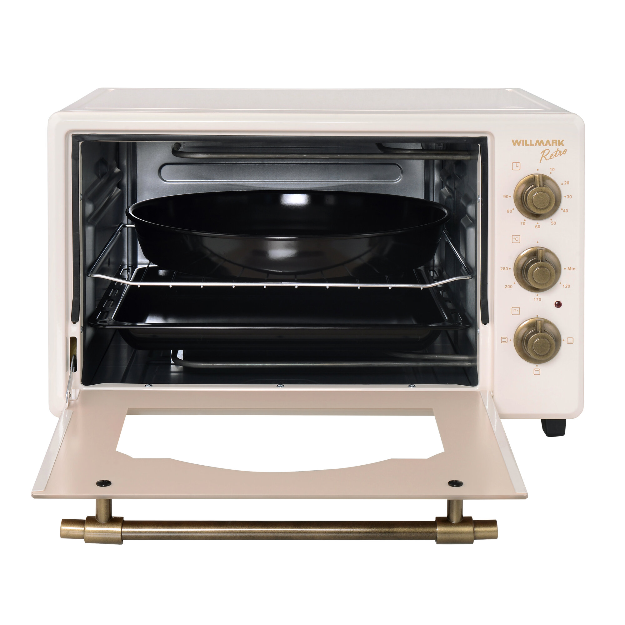 10 цен на Мини-печь WILLMARK WOF-405BR (40л, эмал. внутр. поверх, лампа, таймер, ретро беж, 1500Вт)
