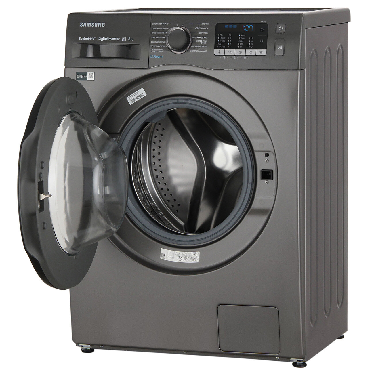 Узкая стиральная машина Samsung WW80AGAS21AXLP, 8 кг, с электронным управлением, инверторным мотором, технологией Eco Bubble, графит / черный 53 090 ₽