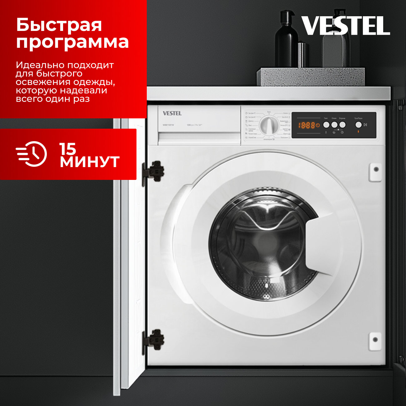 Встраиваемая стиральная машина VESTEL, загрузка 7кг, 1200 об/мин, защита от протечек, 15 программ информация: