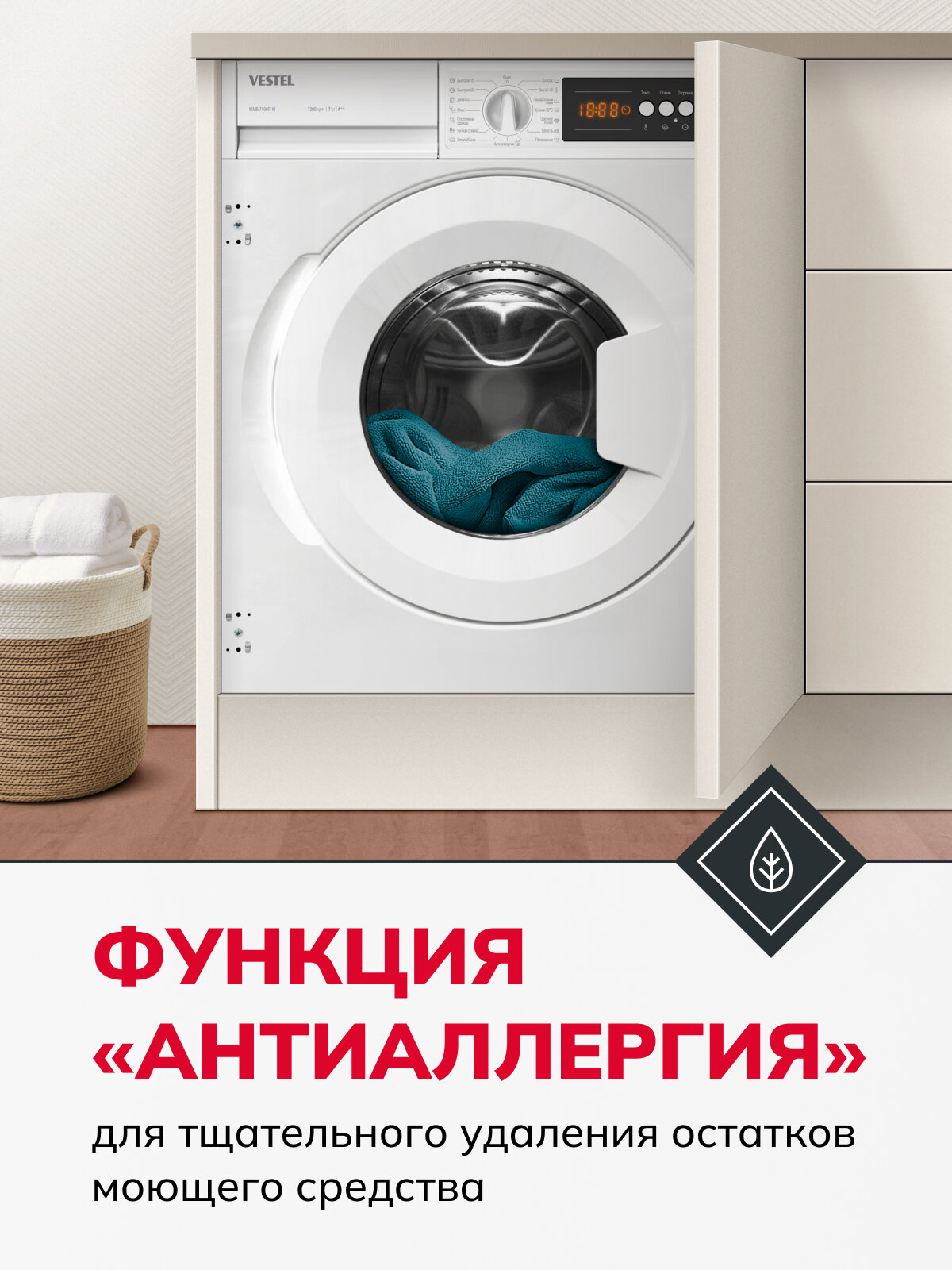 Отзывы на Стиральная машина Vestel WMBI7100T1W встраиваемая, 15 программ стирки, максимальная скорость отжима 1200 об/мин, белая
