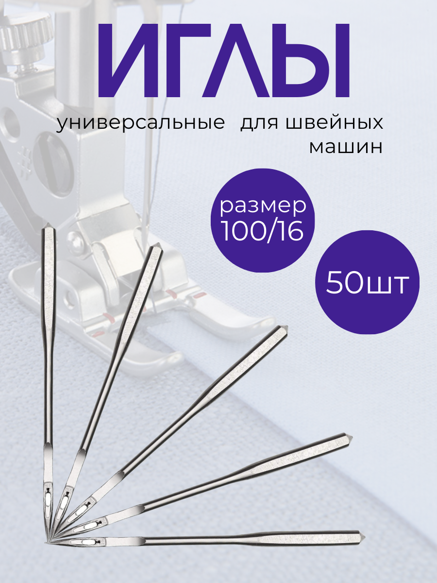 Иглы FLYING TIGER для бытовых швейных машин №100, 50 штук, универсальные информация: