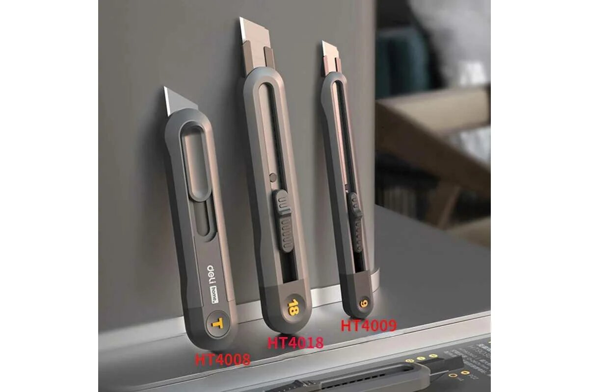 HT4009C Deli Технический нож Home Series Gray ширина лезвия 9мм, эксклюзивный дизайн, корпус из высококачественного соф 233 ₽